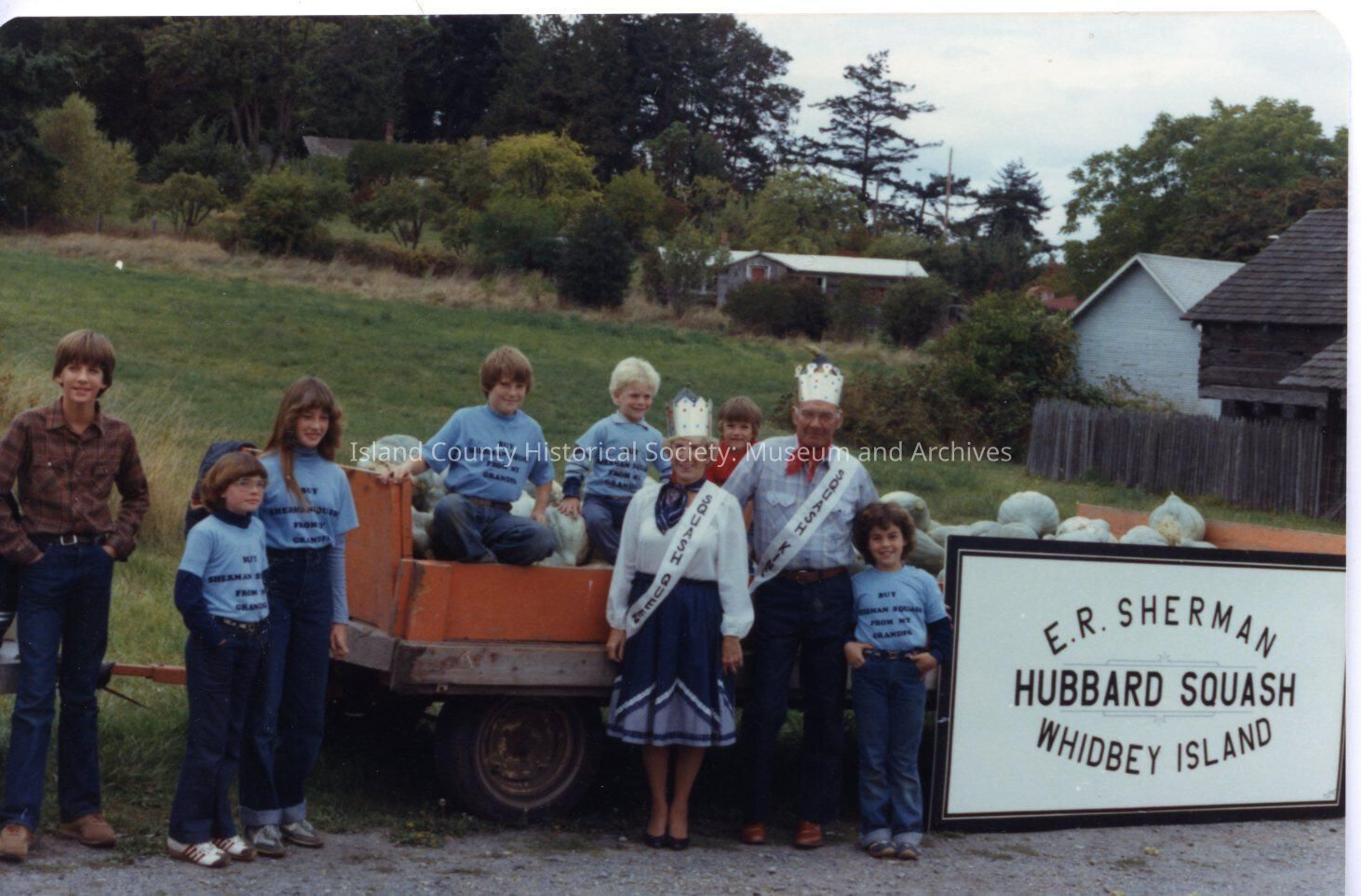 Squash Festival Queen Jean Sherman and Squash KIng Ed Sherman. Squash Festival Hubbard Squash.On the reverse Squash Festival