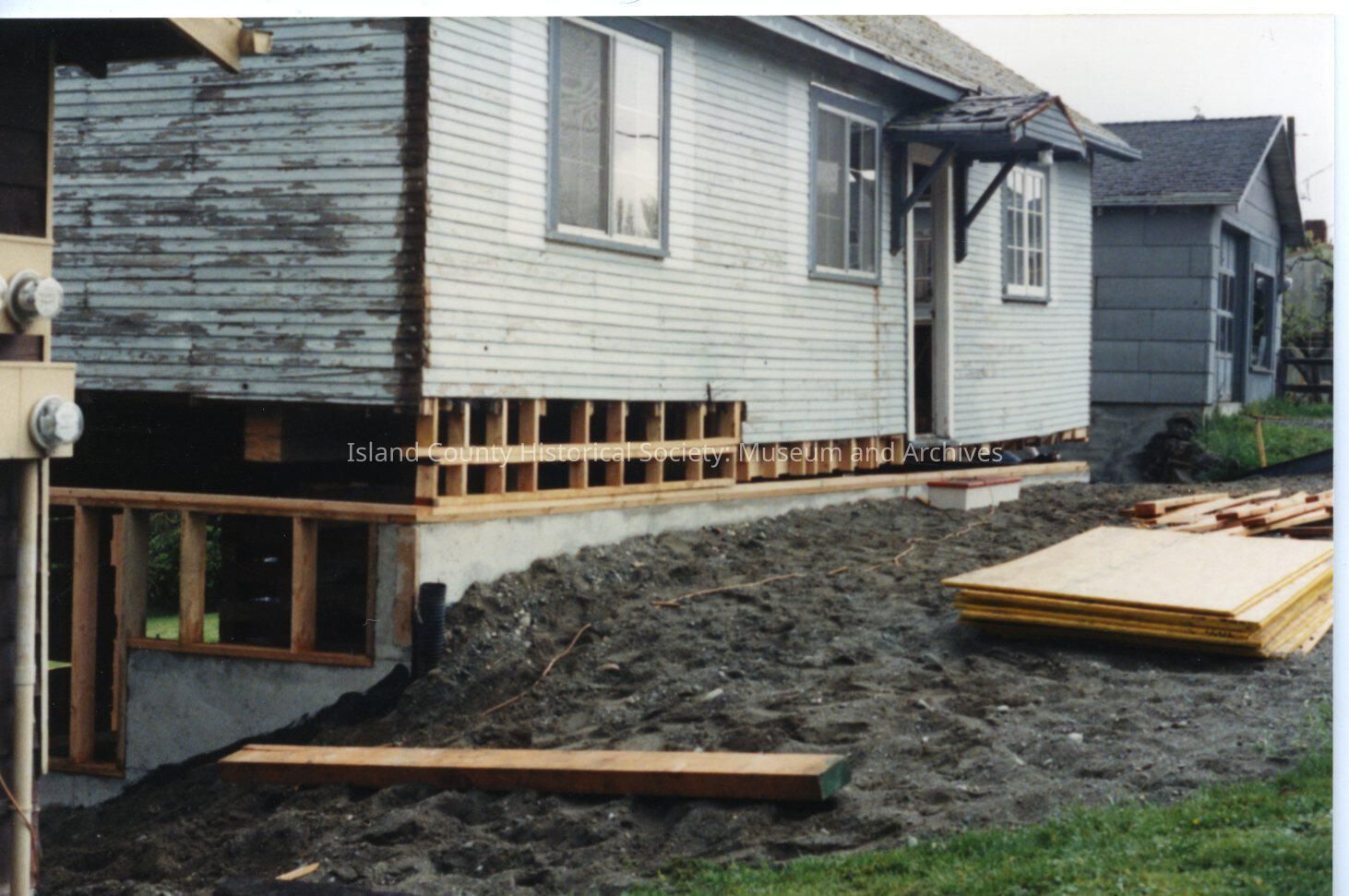 The building is the same structure shown in photos 2018.052.456 through 2018.052.462. which show stages or relocation and renovation of the subject building. The building's exterior was removed, as well as the chimney and the building was moved to Coveland Ave, next to the Oyster Catcher Restaurant, elevated and a new ground floor added.Made/Created