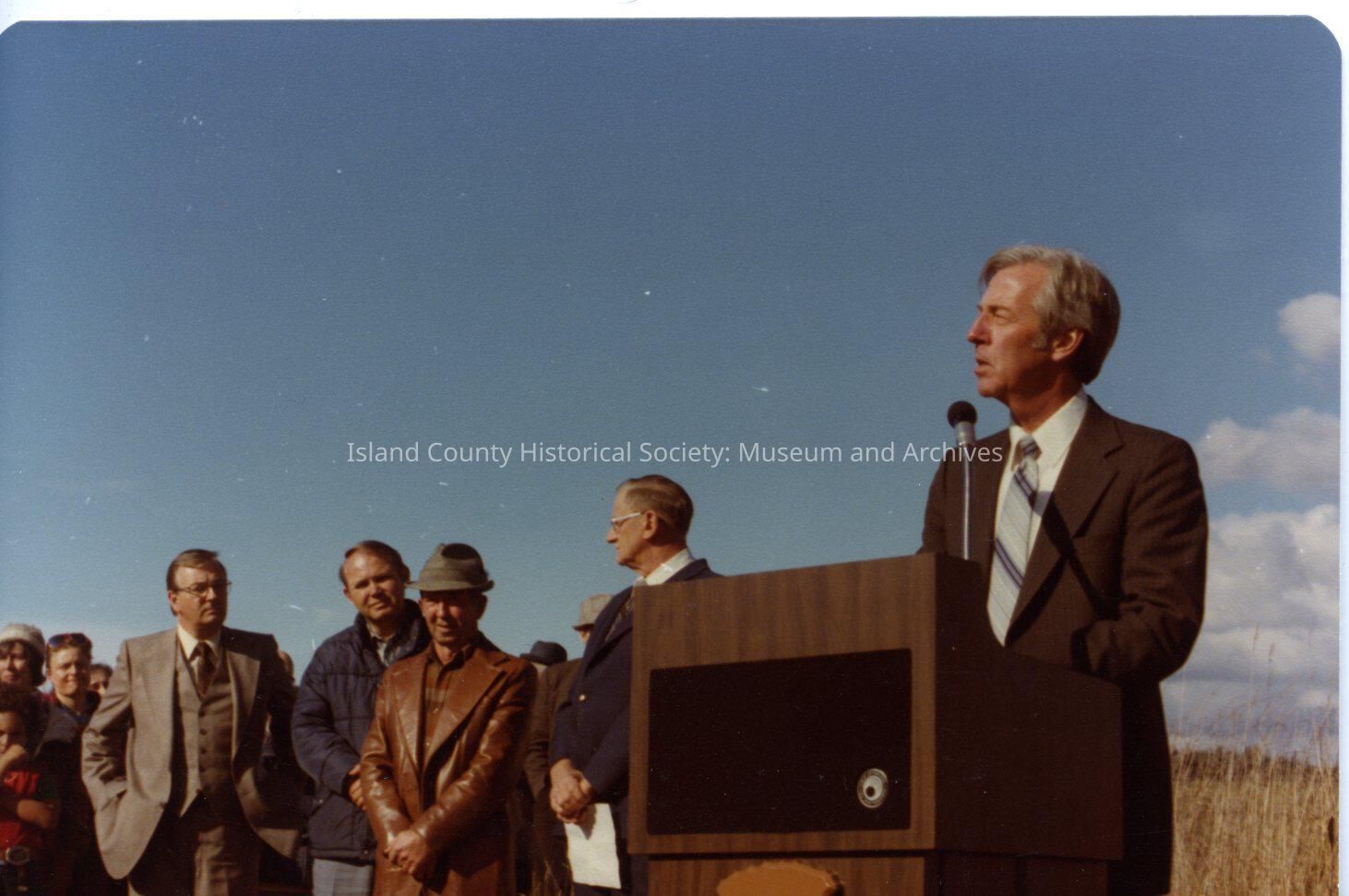Reverse of photo shows: Oct/29/80. Left - Al Swift Lou Naddy Lou Romeo NPS (creation of Ebeys Landing National HIstoric Reserve)