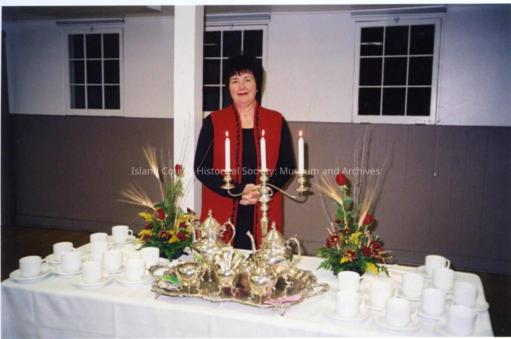Photo of woman in Coupeville Rec. Hall. Handwritten on the back of the photo is the name Pat Cozine.