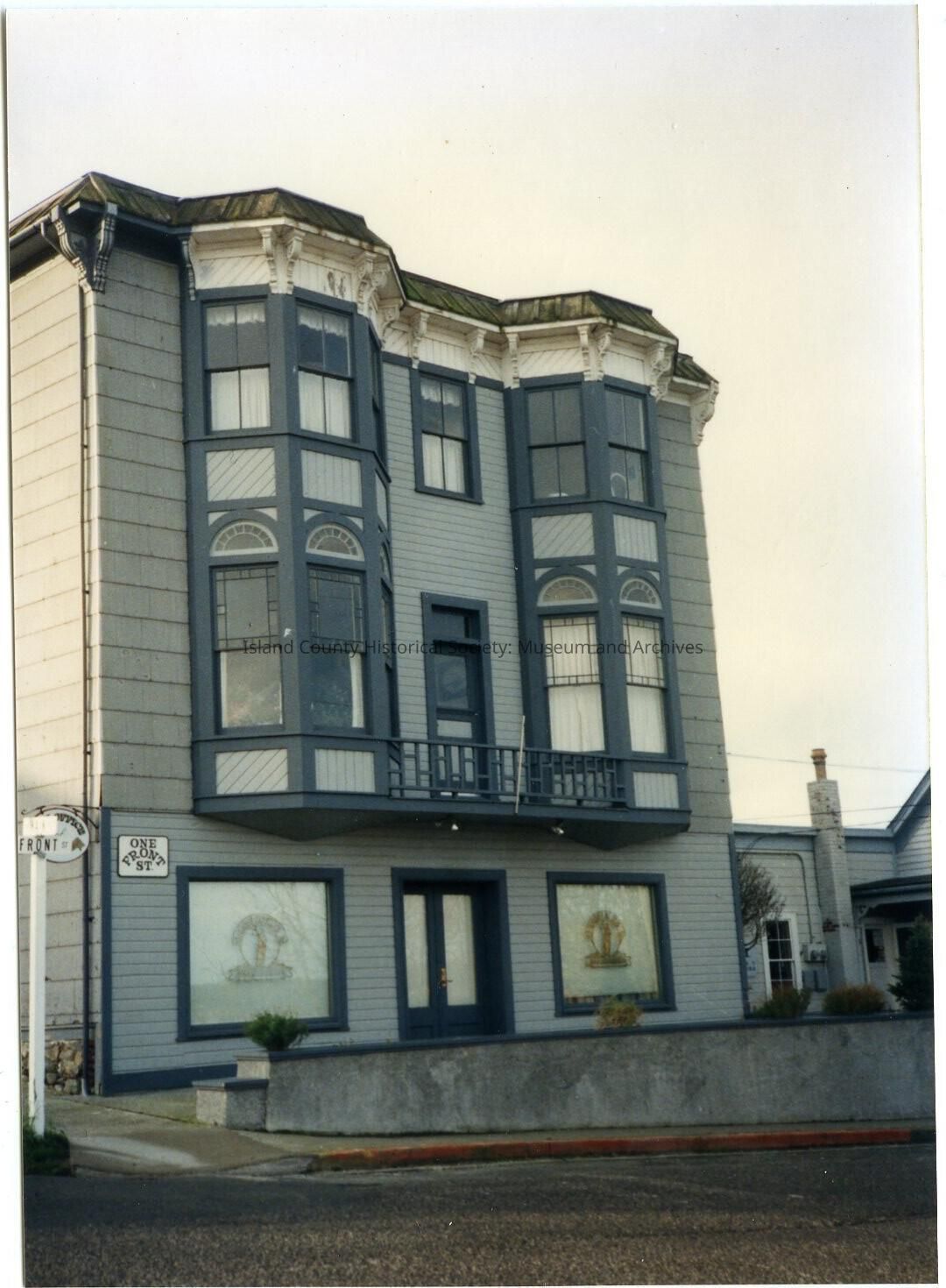 Photo of the building at 1 NW Front Street, built in 1889. It was the Glenwood Hotel. The first floor has been: sweet shop, hardware store, tea room and dress maker, shell store. The building is now a law office and residence. The building is three stories, two bay windows for the top floors, two large windows and central front door on first floor. Small balcony and door between the bay windows on the second floor.Made/Created