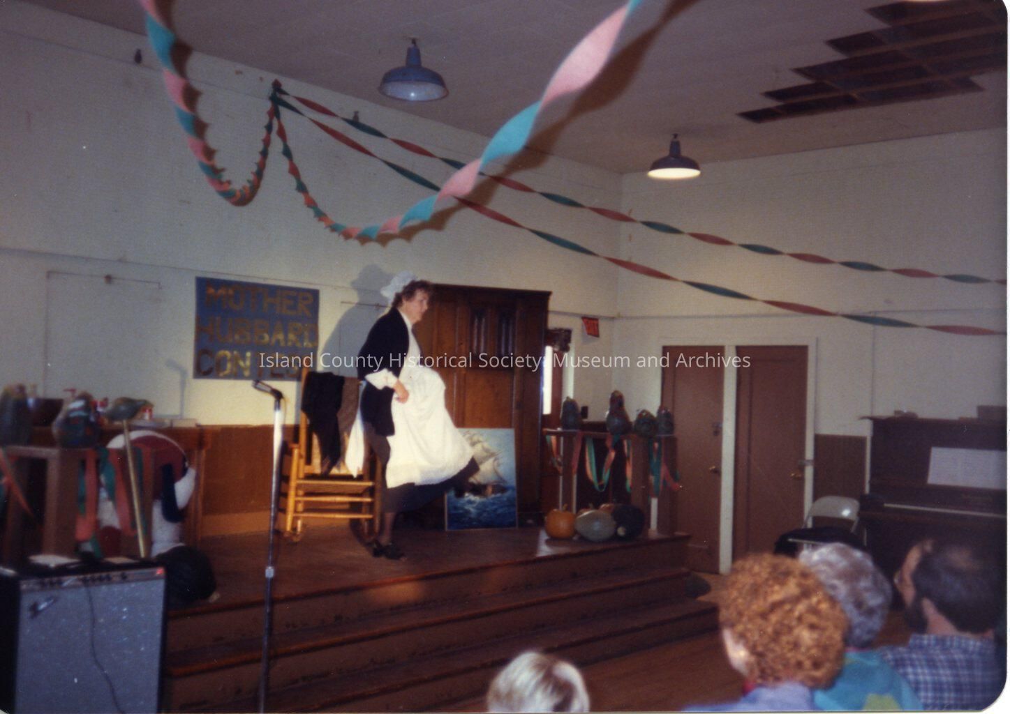 Photo of several people in a building . On the back of the photo handwritten is '83 Bethel's tap dance.