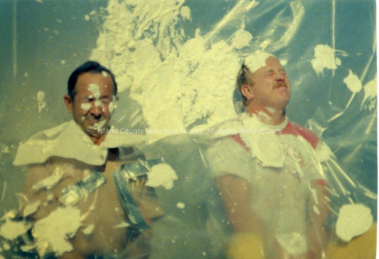Pies in the face. Reverse shows: Lew Naddy and Merf Cross 10-986