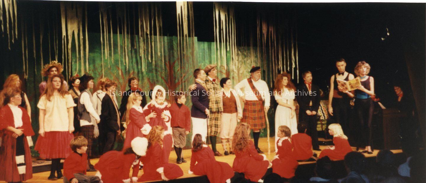 Cast of Play on stage. Handwritten on back Wind in the Willows. 10/88.