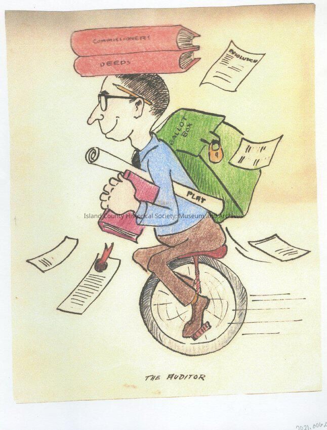 A comic drawing of a man riding a unicycle labelled "The Auditor"Collection