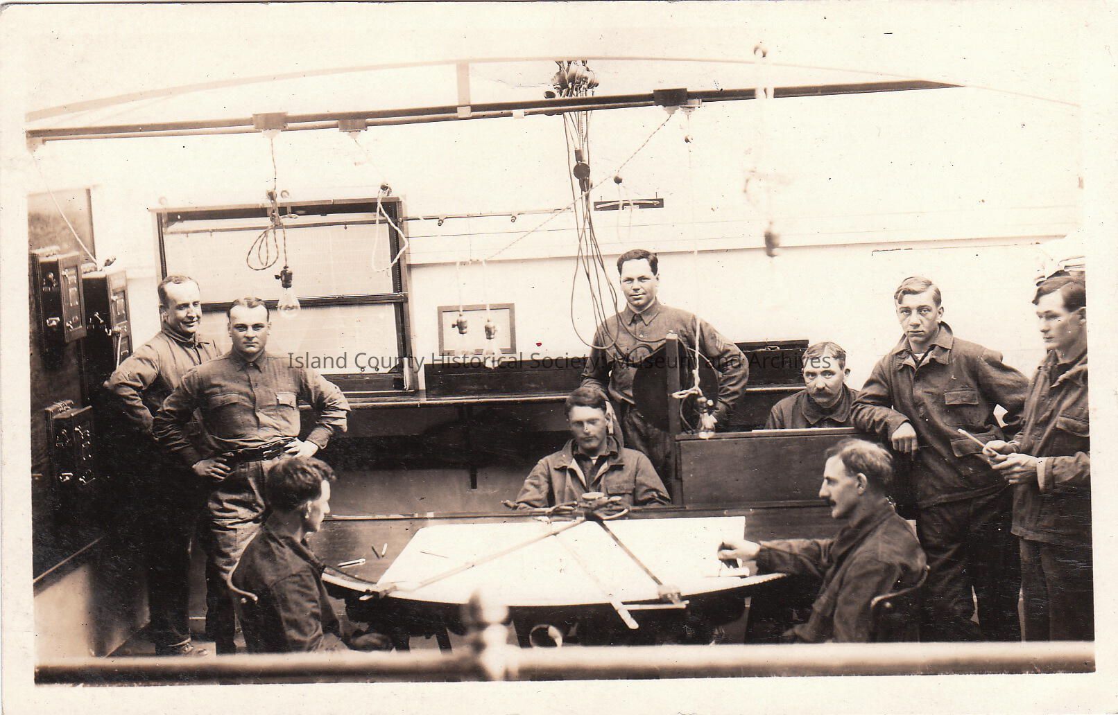 Ira Hull in rear center with group of men, Triangulation Station