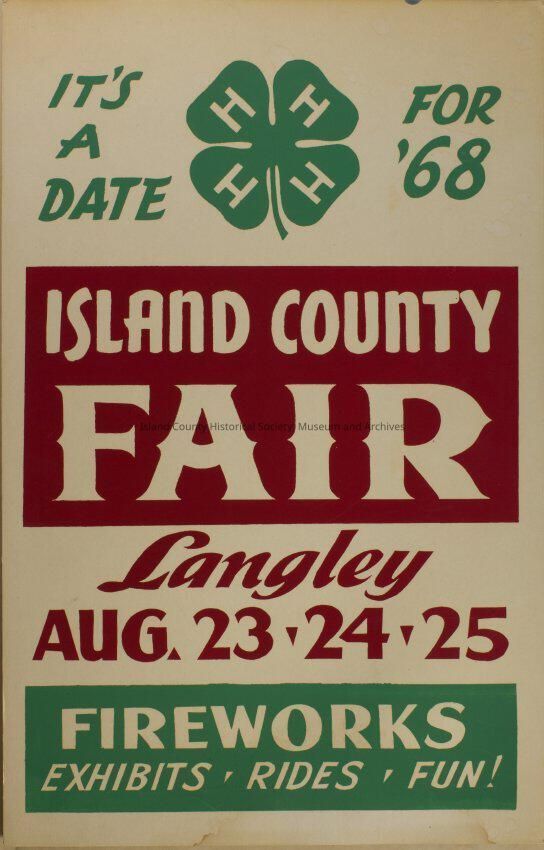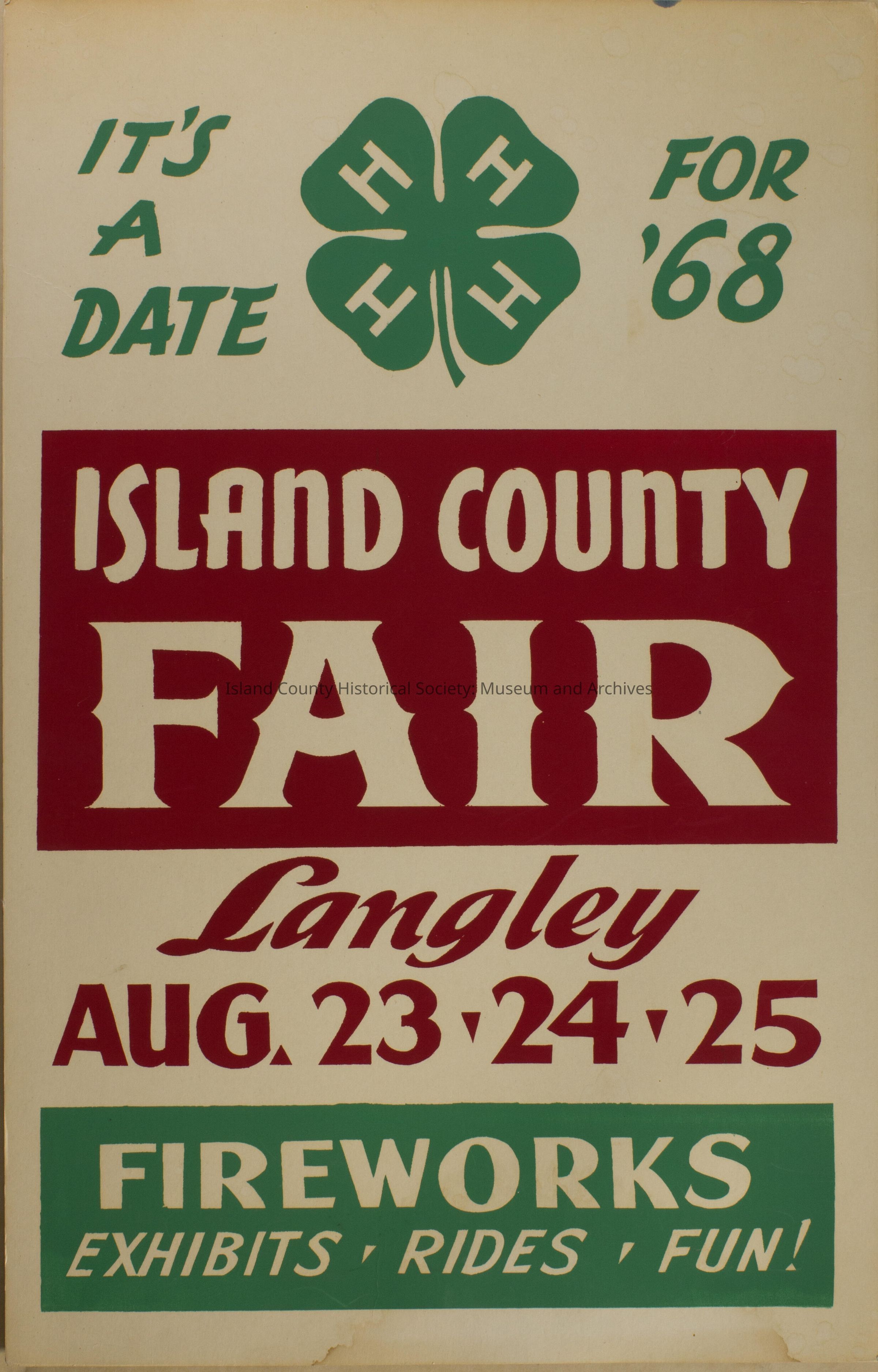 Colorful poster for the Island County Fair, August 23-25, 1968. At the top, a shamrock of the 4-H Club.Lexicon