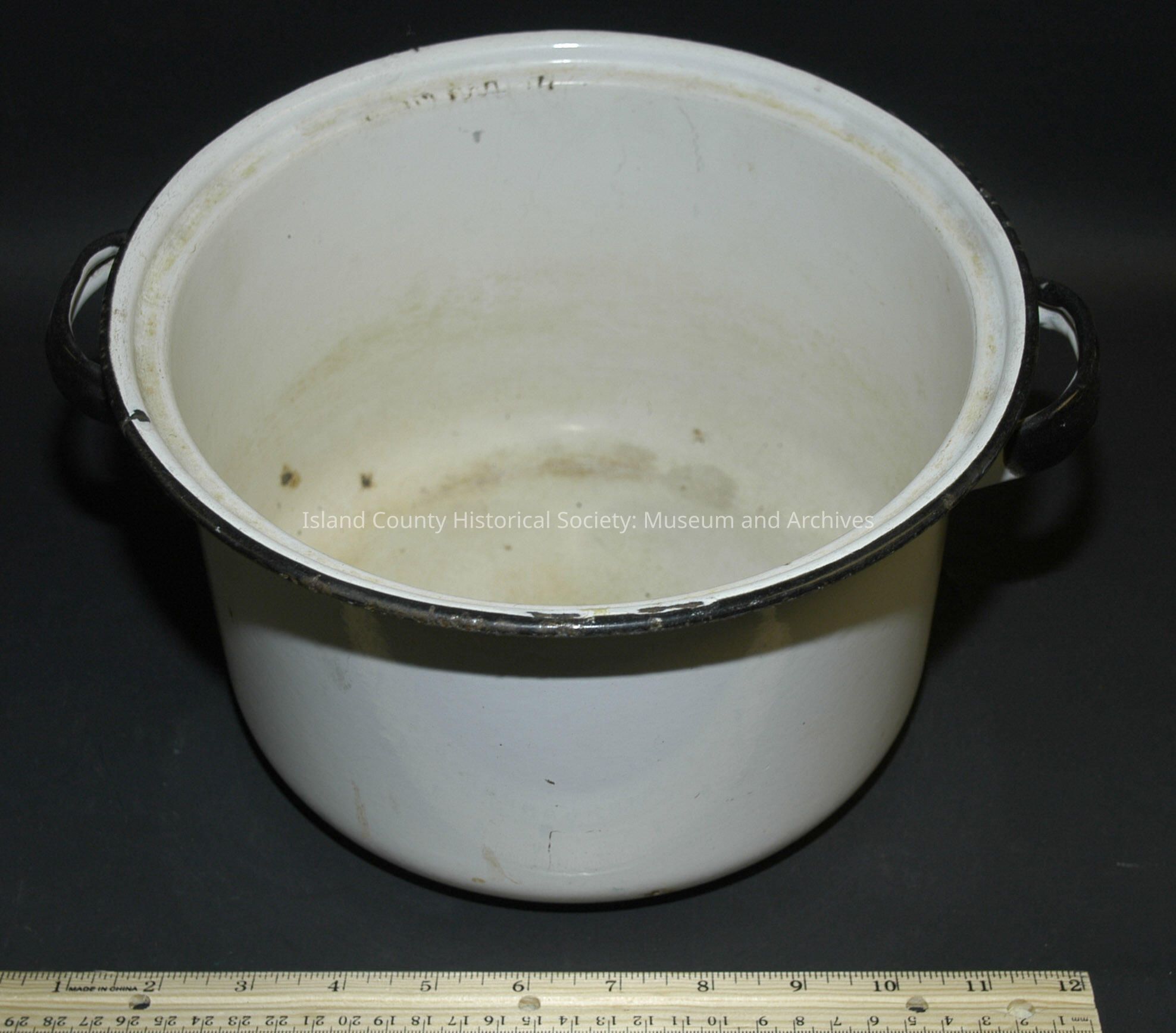 White enamel 2-quart pan or pot. No lid.
