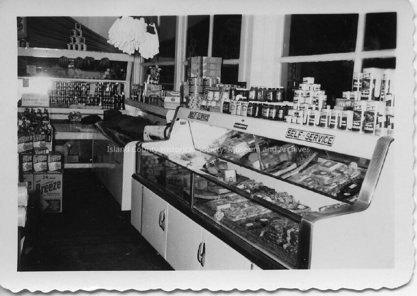 Interior of a grocery/deli/drugstore at Prairie Center, showing the self serve refridgerator meat case. length - 10 feet width - 34 inches height - 52 inches