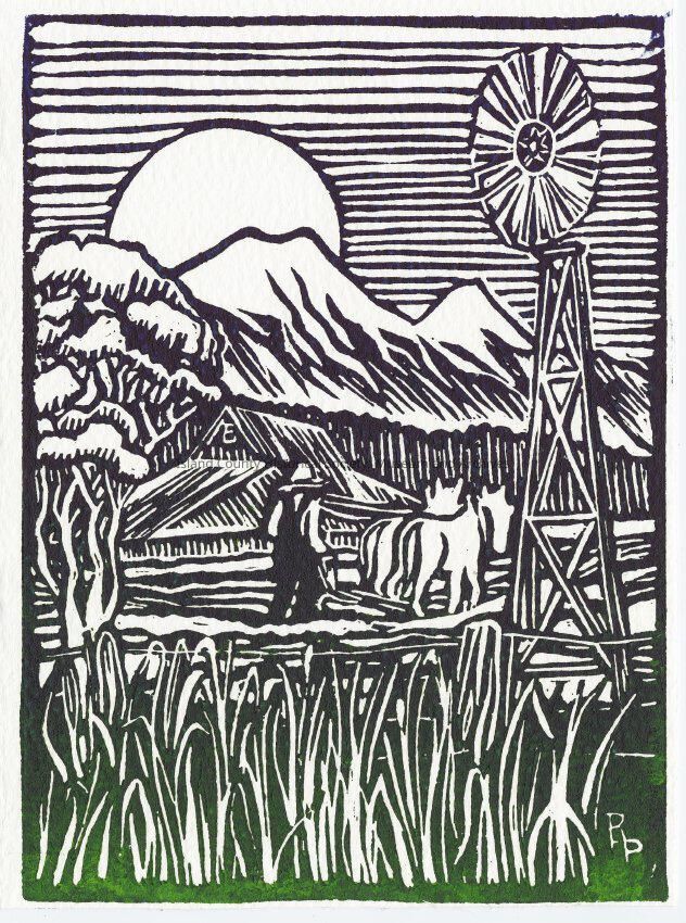 Digital Scans of Roger Purdue's artwork, wood block artwork