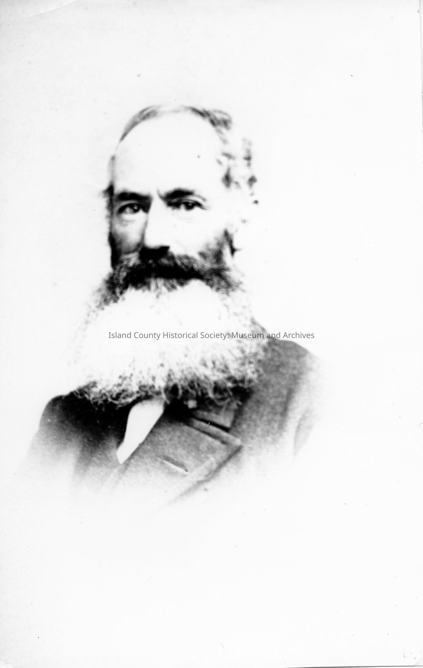 Portrait of Nathaniel Davis Hill with a large beard and wearing a overcoat.