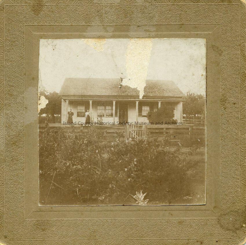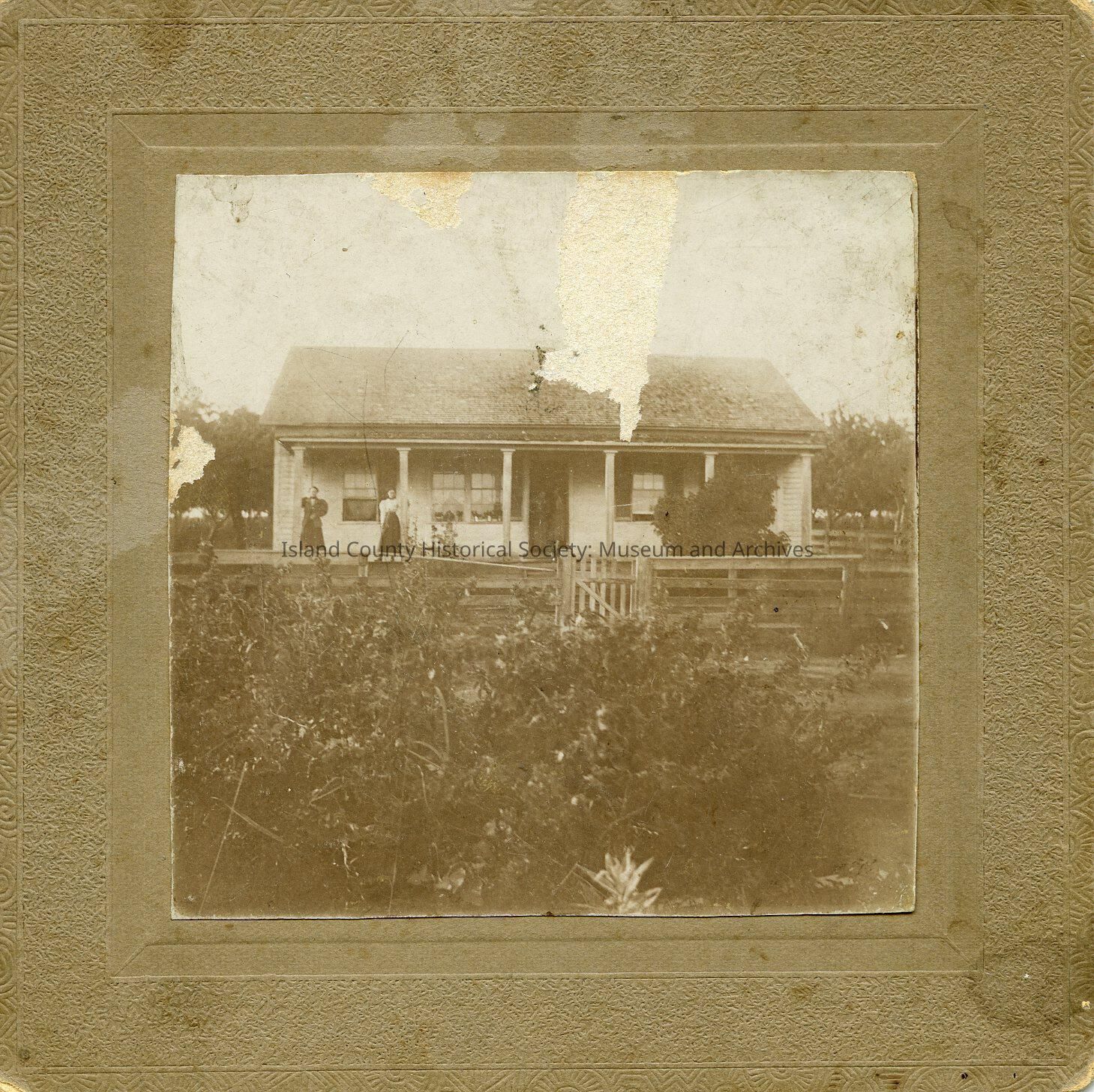 J.E. Barrington home in Oak Harbor. Back of photo reads; "J.E. Barrington home in Oak Harbor, Ned McCrohan and family lived in this house in early days. 1st home where kids born."