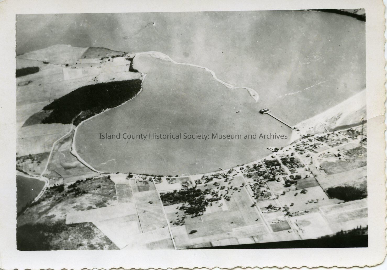 Aerial view of Oak Harbor, Maylor's Point and cooked spit, later 300 feet was cut off by the Navy for fill.