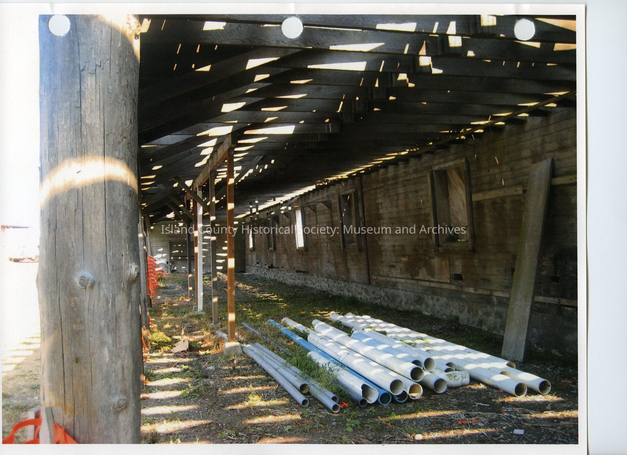 Ft. Casey fuel/mule shed Interior of mule shed looking towards the opposite end, light coming through the rafters.
