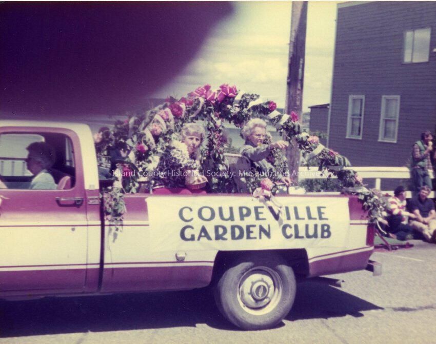 On the back: Coupeville parade Joyce & Roberta part of Garden Club.