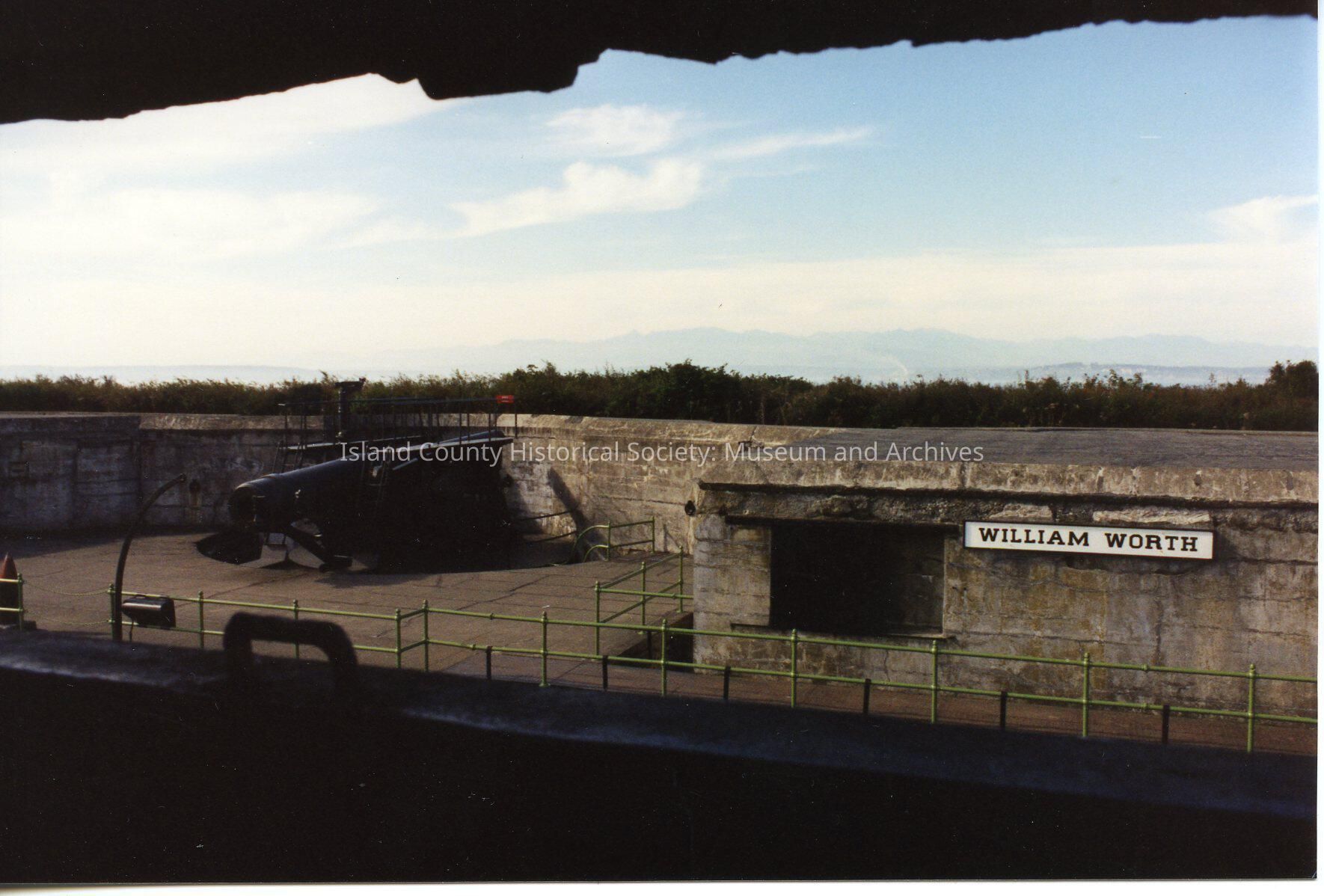 Battery at Fort Casey - William Worth over the doorway. It is a sunny day with some clouds in the sky. On back: Ft Casey State Park