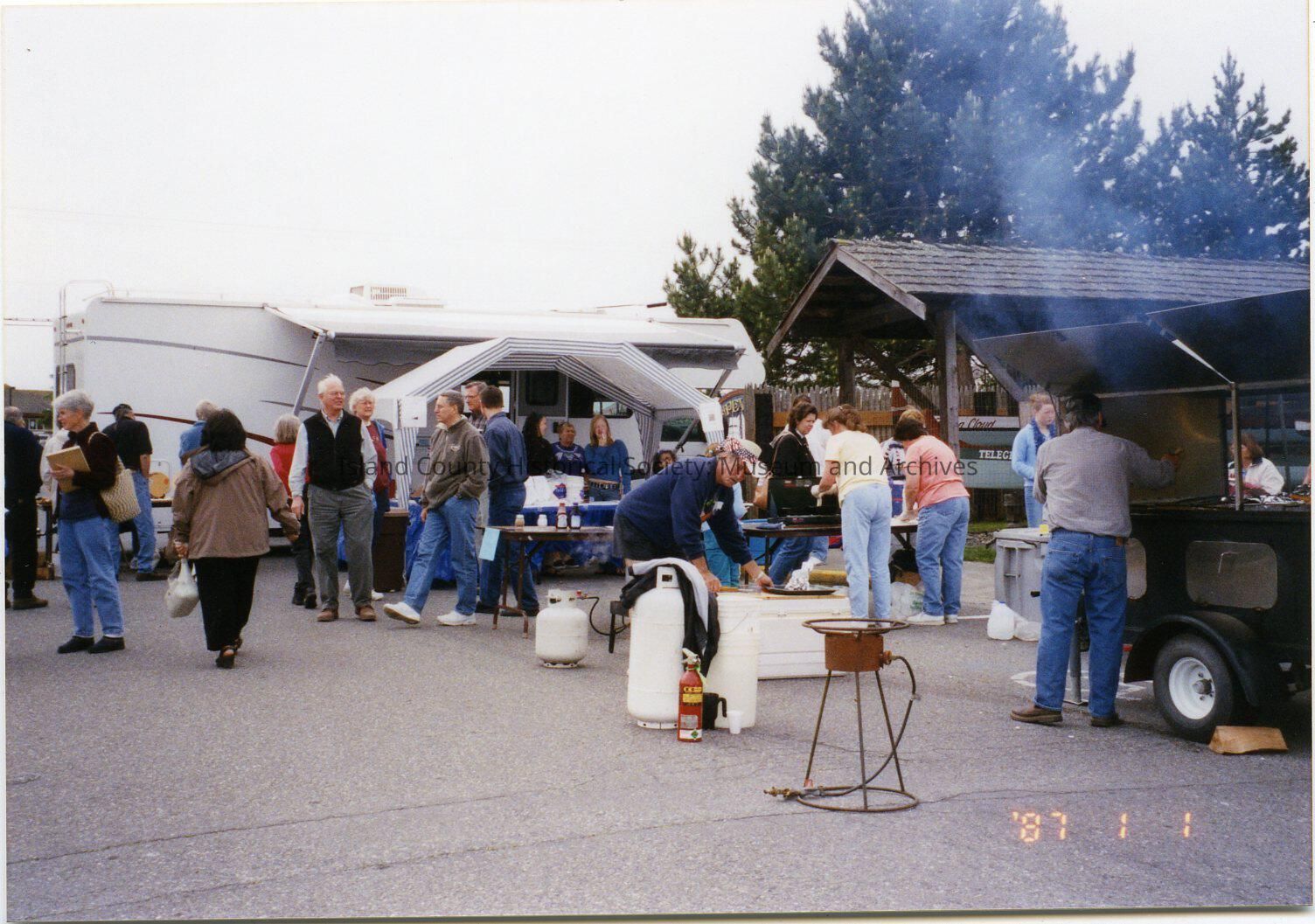 May 17, 2004 Coupeville Water Festival. A group of people walking around looking at vendor items, food carts, in front of the museum on Front Street.Collection