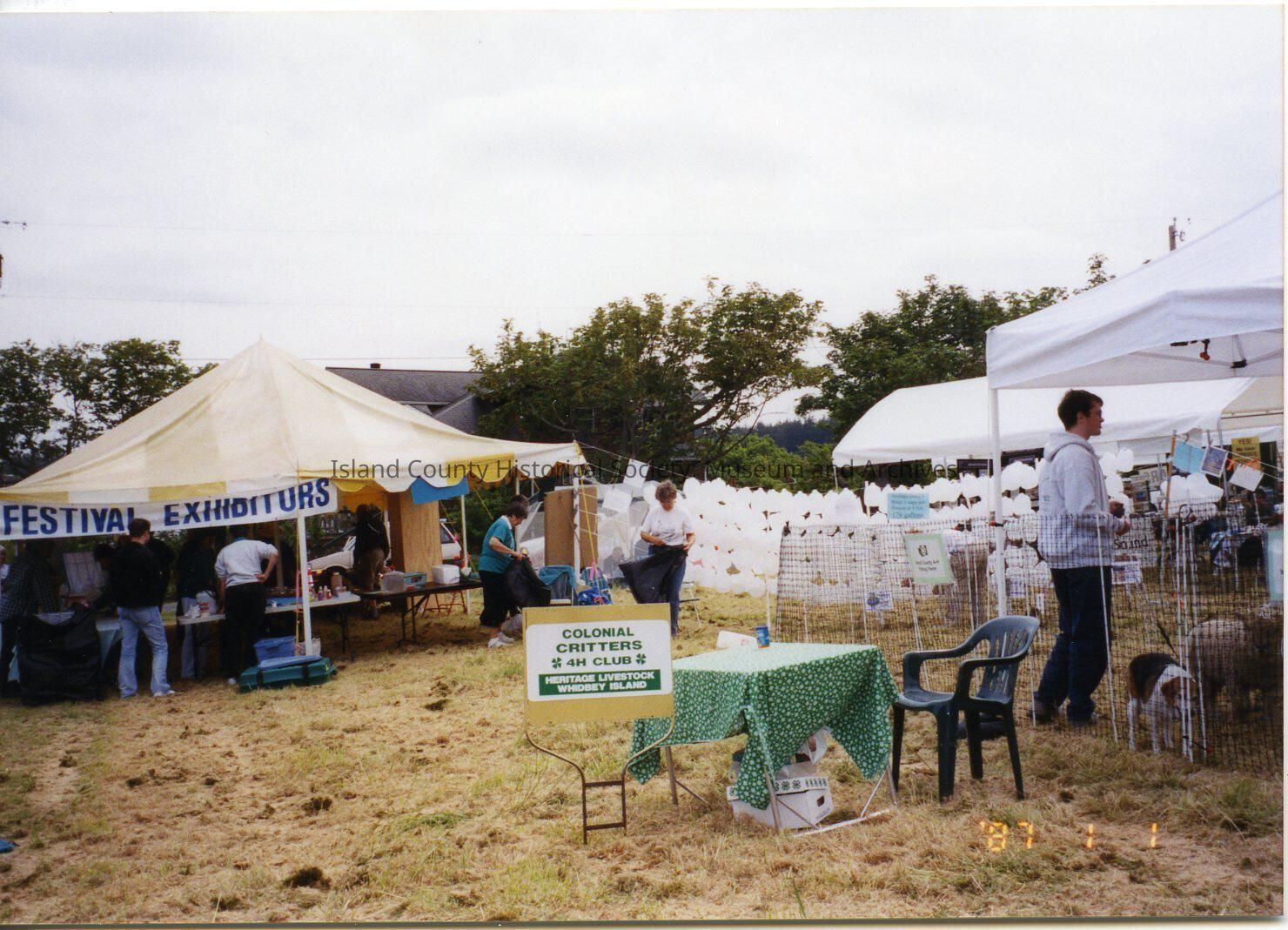 May 17, 2004 Coupeville Water Festival. The 4-H group - petting area. Marquee/tent. Events tent - yellow and white striped.