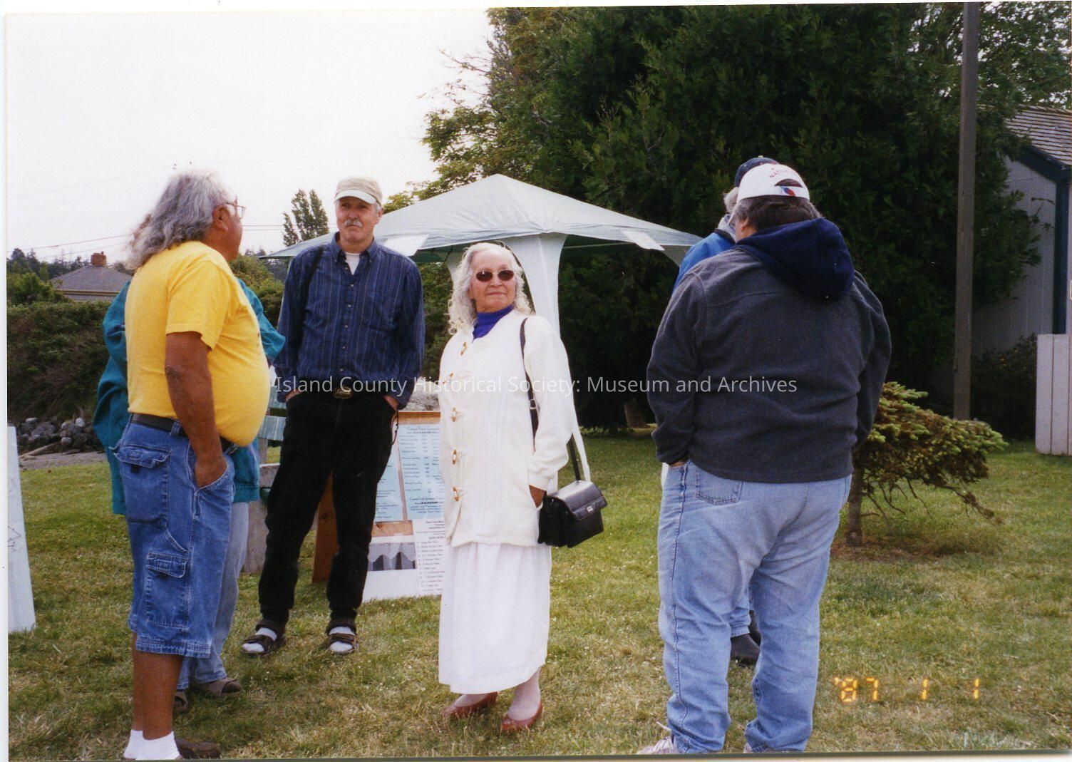 May 17, 2004 Coupeville Water Festival. Men and woman talking - woman in white facing camera.