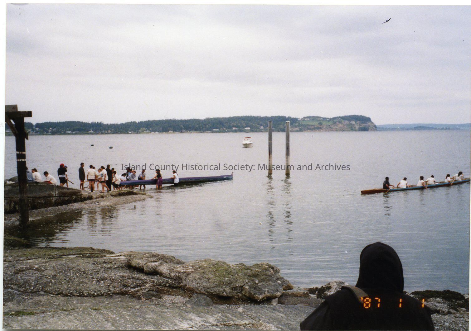 May 17, 2004 Coupeville Water Festival. Coupe Park beach access - one canoe in the water and another canoe about to be launched or taken out.