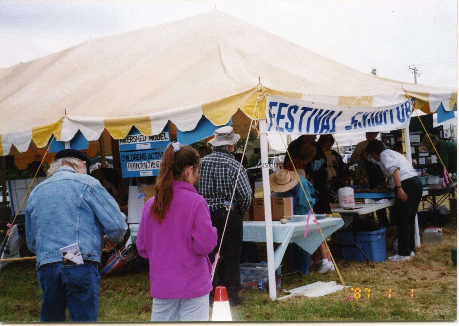 May 17, 2004 Coupeville Water Festival. People at the Festival probably registration or events tent. Girl in front wearing a lilac/purple jacket.
