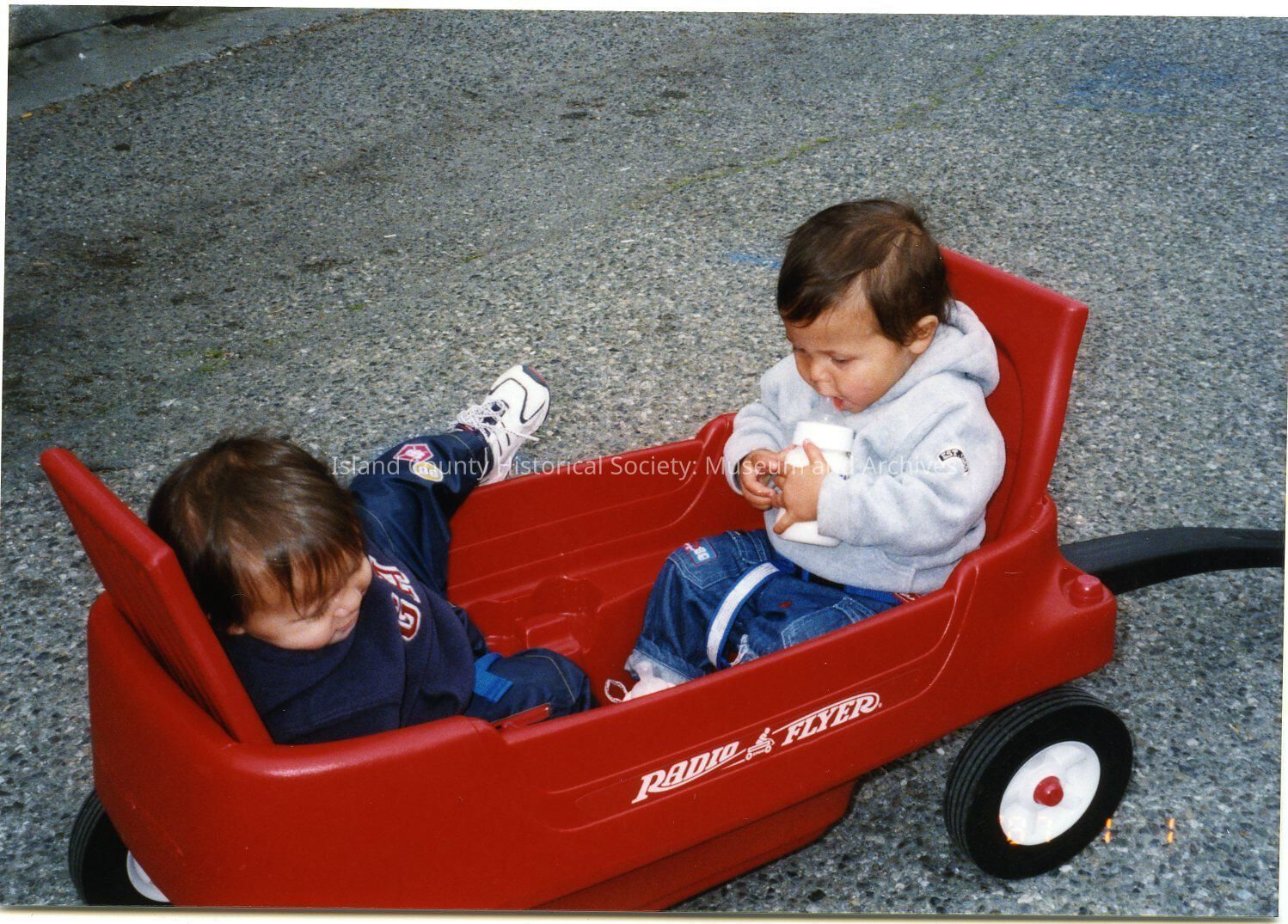 May 17, 2004 Coupeville Water Festival. Two toddler boys in a red Radio Flyer plastic wagon.