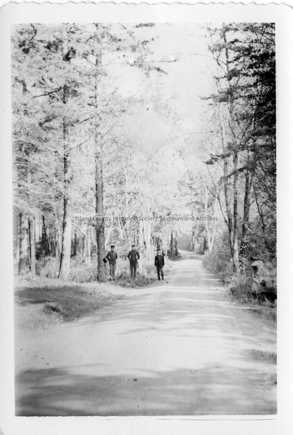 Three soldiers on wintery road There is another copy.