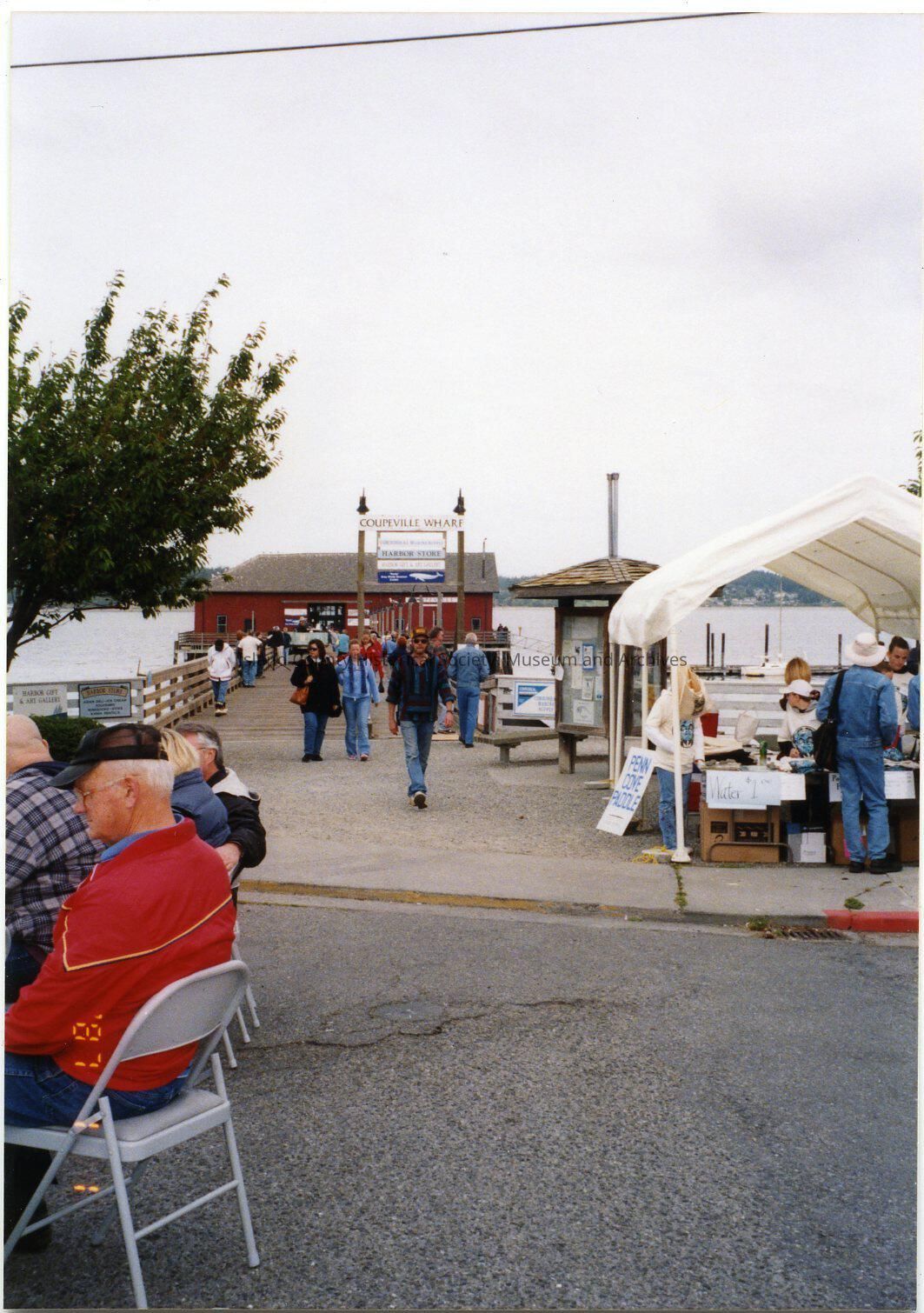 May 17, 2004 Coupeville Water Festival. People walking to and from the wharf, sitting and watching performance on the podium and looking at vendor tables.Collection