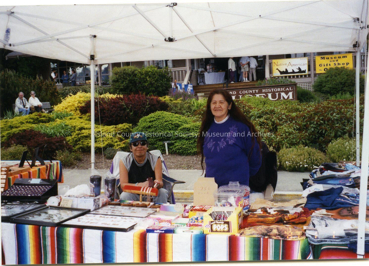 May 17, 2004 Coupeville Water Festival. A woman and man behind a table of items in front of the museum.