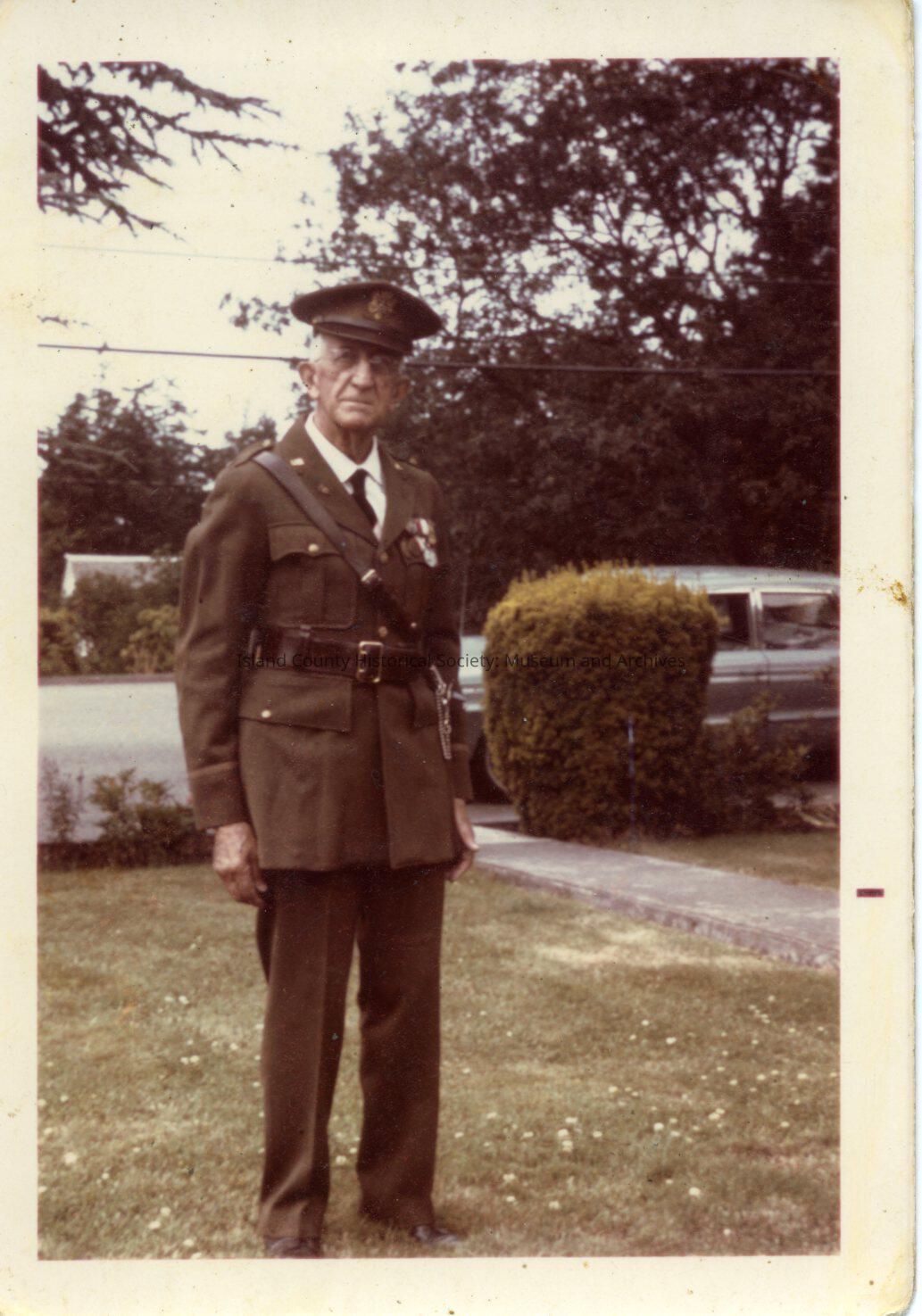 Dr George Heap in old uniform. Possible WW1 uniform. Taken at Oak Harbor. From accession book: Group of pictures with old number 91-6-73A-P from 1891-1983.