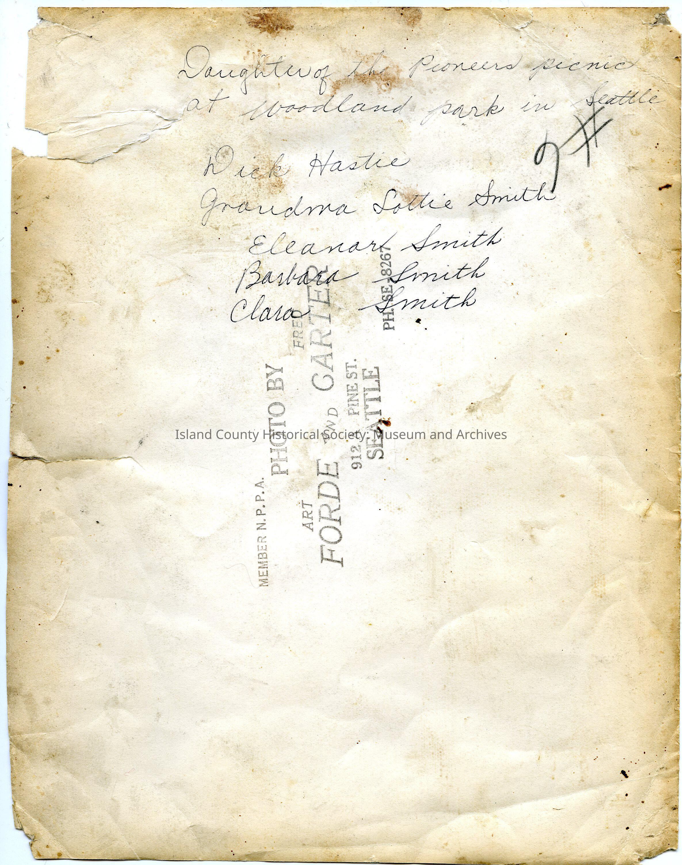 On the back: "Daughters of the Pioneers Picnic at Woodland Park in Seattle