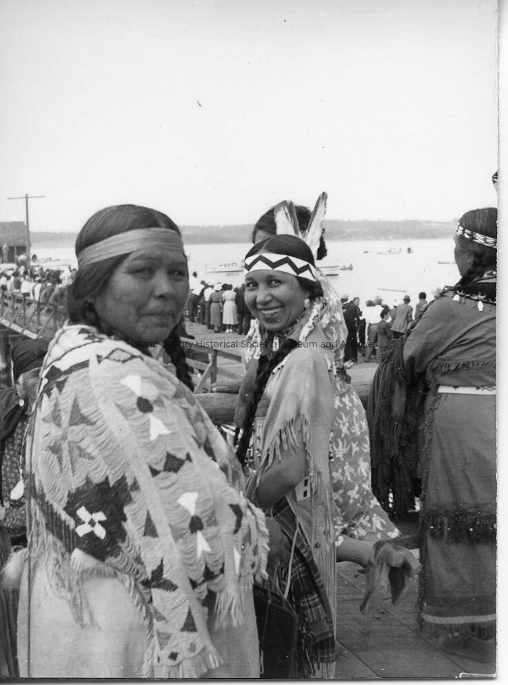 Coupeville Water Festival circa 1930. Two native women looking at the camera surrounded by several other native women.