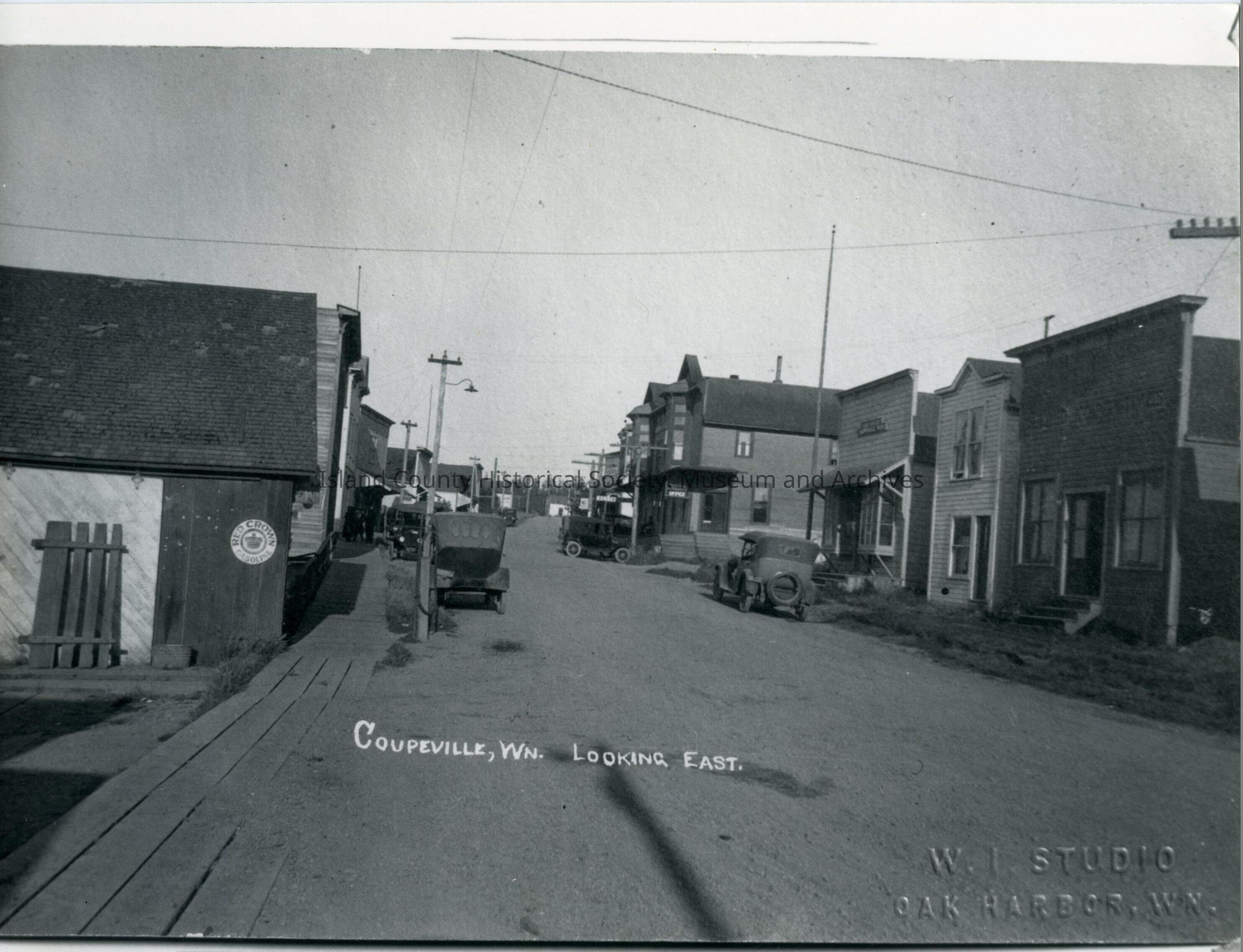 Photo of Front Street, Coupeville, Wash. looking east. Photo from W.I. Studio, Oak Harbor, WA printed on the front.