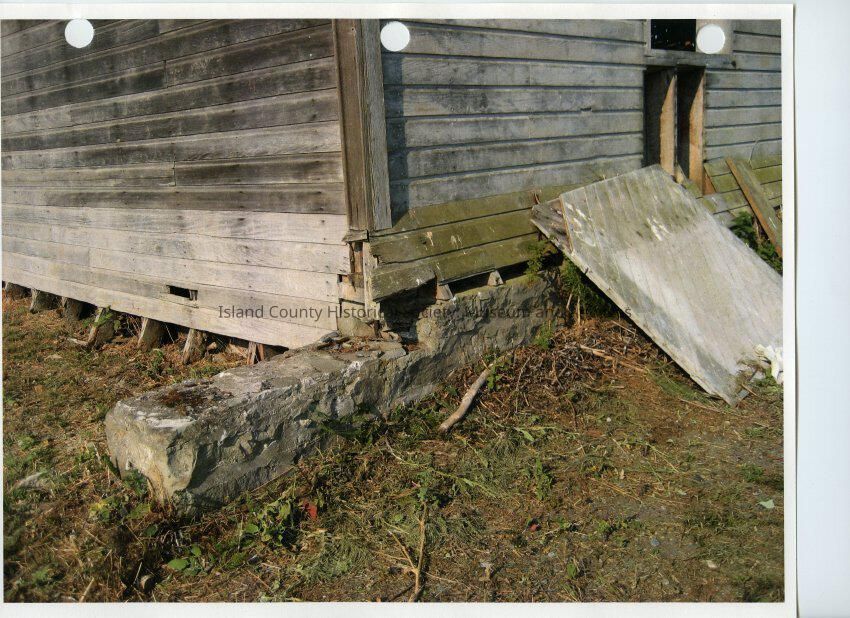 Ft. Casey fuel/mule shed Photo shows the corner of the shed with focus on the foundation at the corner.