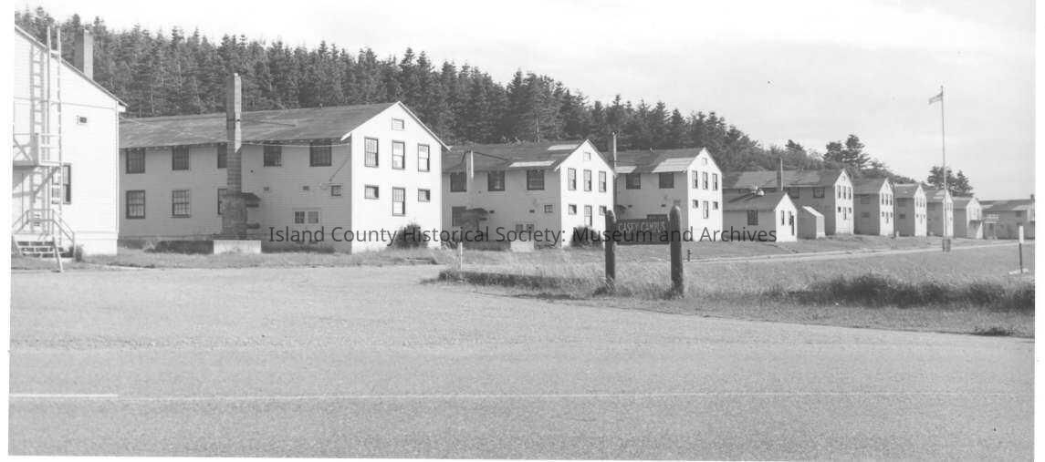 Ft. Casey WWII barracks that replaced the original barracks (original salvaged 1938). Temp barracks constructed for WWII. The sign indicates Camp Casey so the image is post 1953. Camera facing SW. SJK