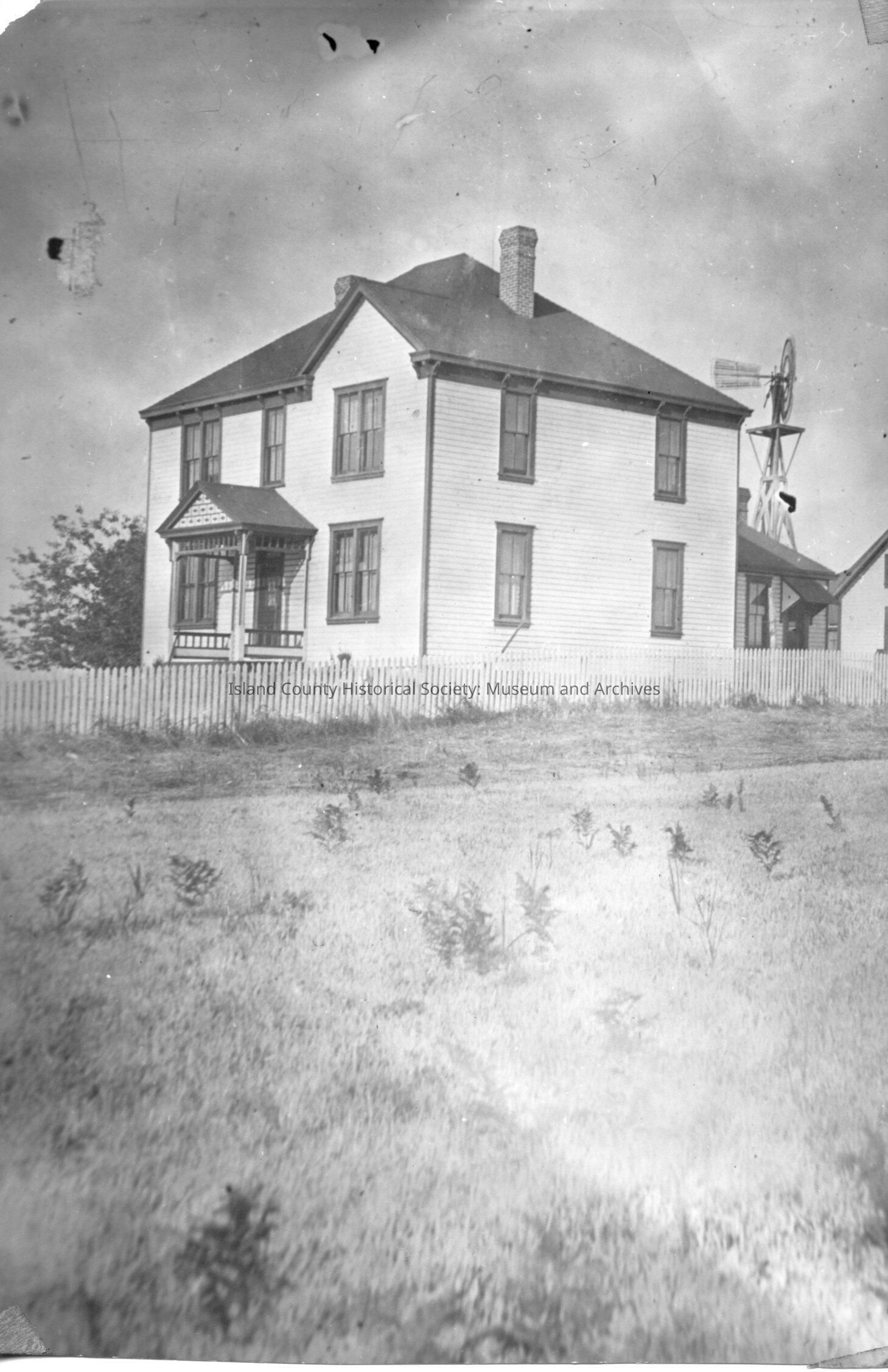 Eason B Ebey Willow Wood Farm circa 1866. Large two story home with a windmill in the back yard. Same photo as: negatives 2019.042.232a-b and photo 2019.042.232c.