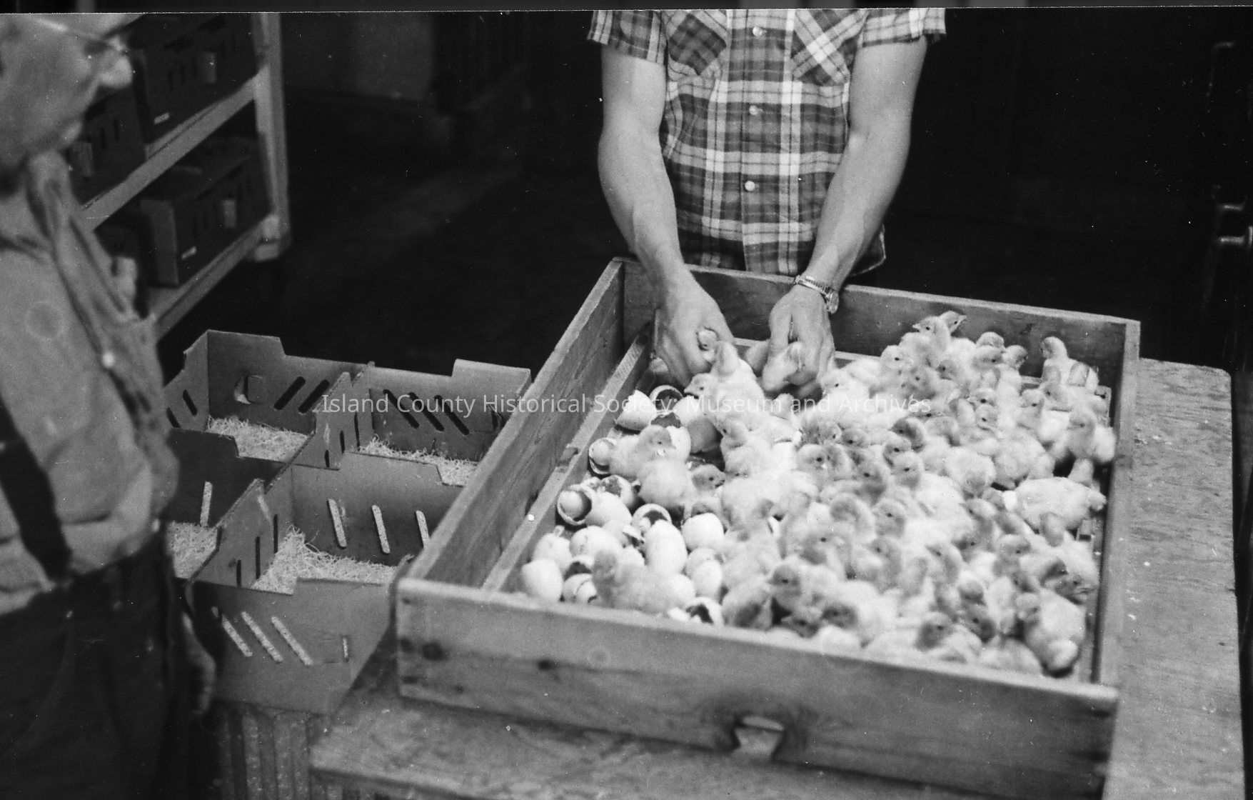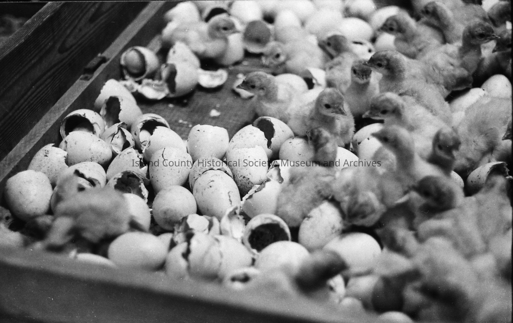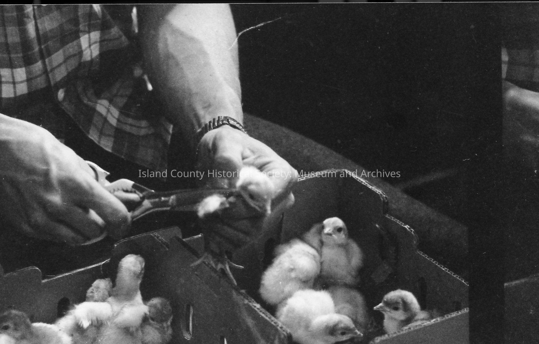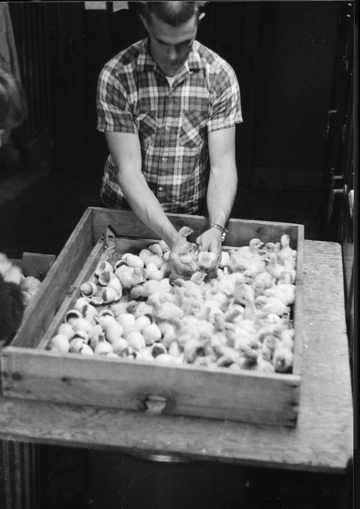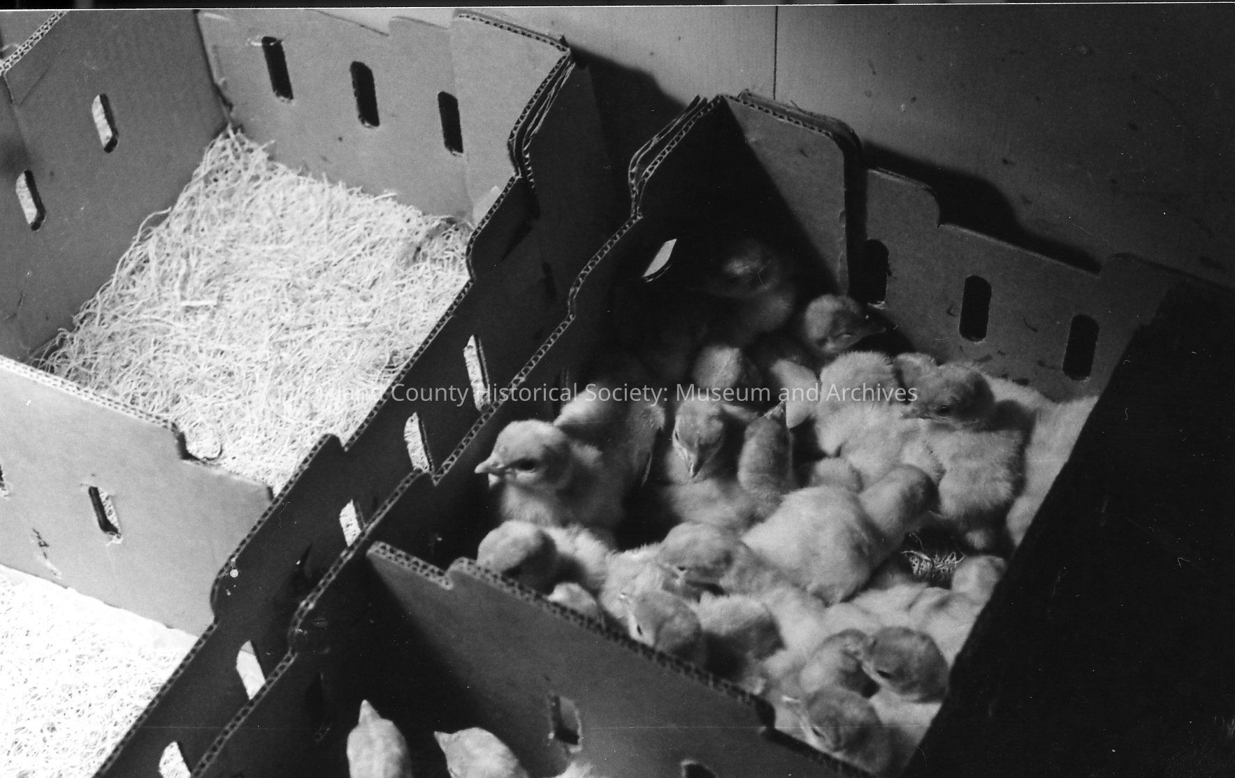 Worker loads turkeys from conveyer to cages on truck at Sherman Turkey Farm.