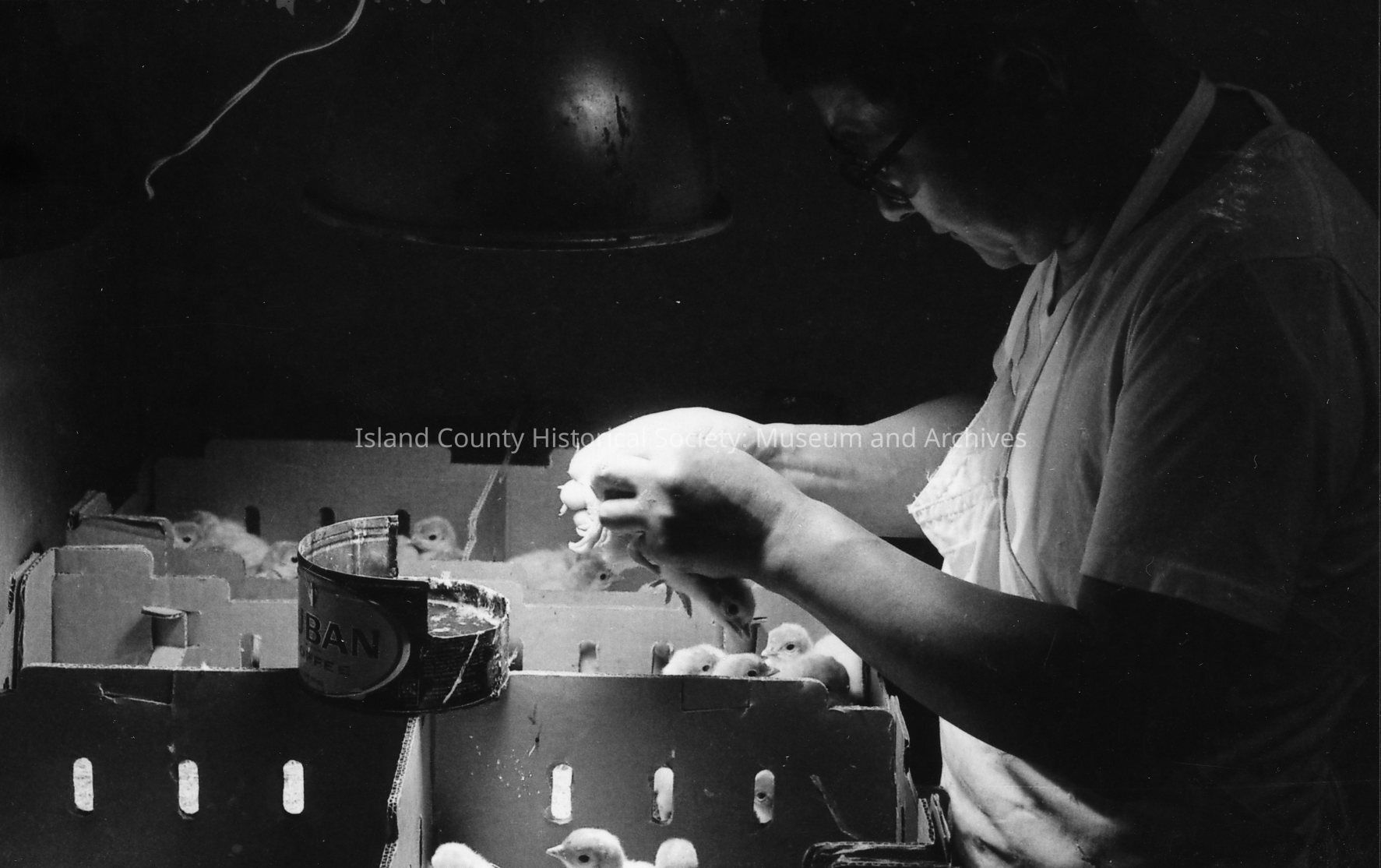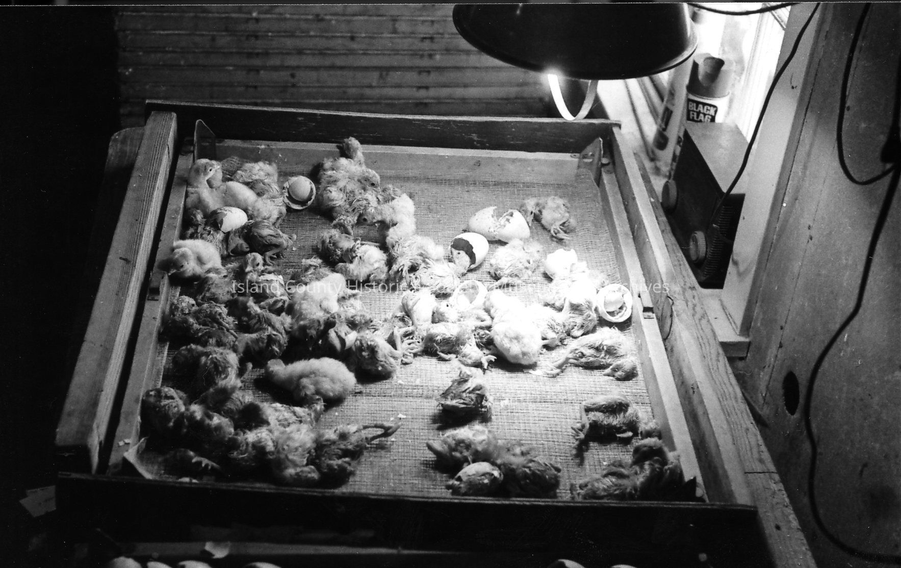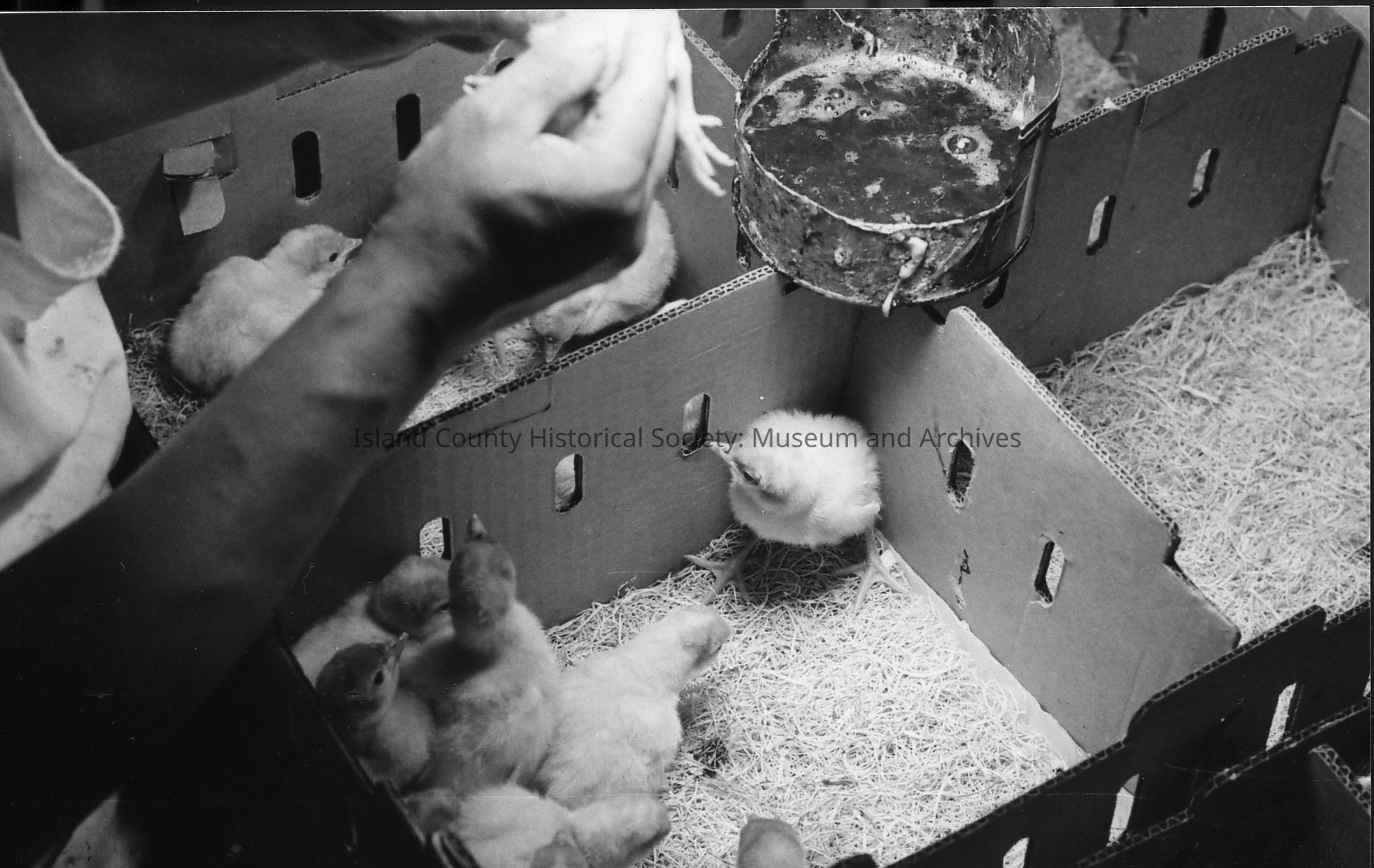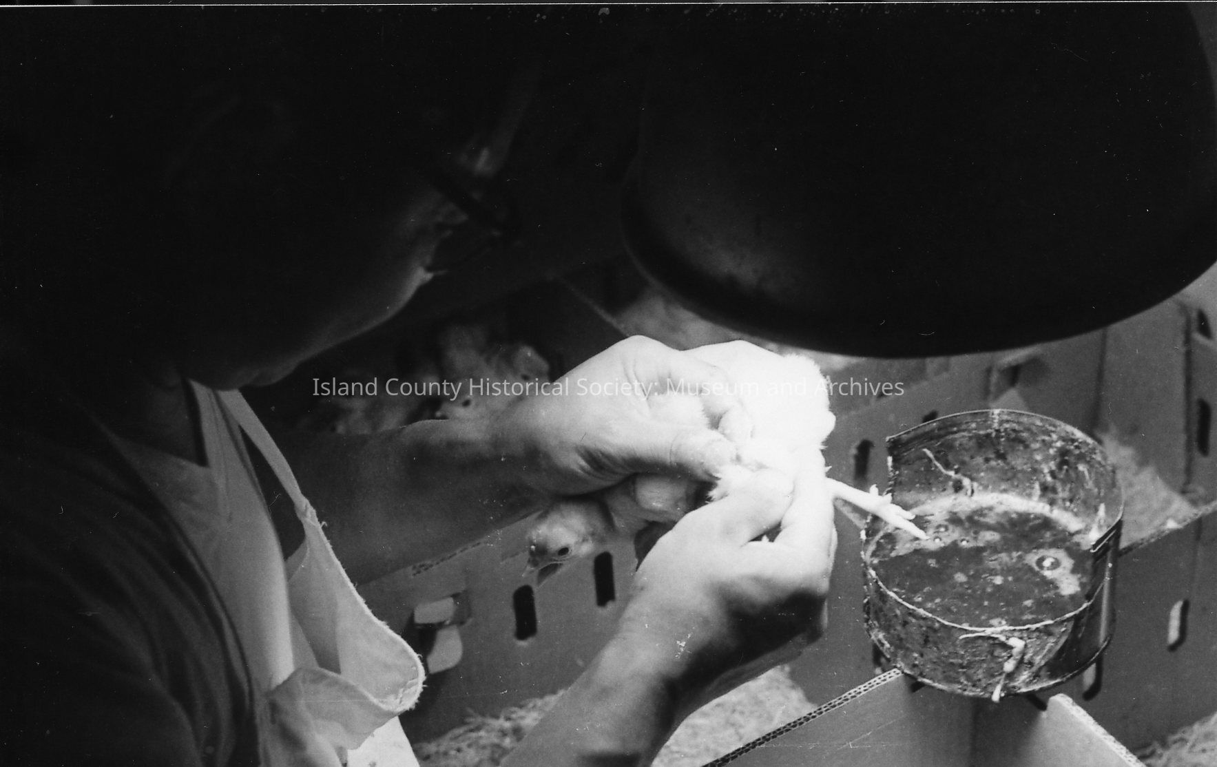 Worker loads turkeys from conveyer to cages on truck at Sherman Turkey Farm.