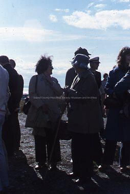 Photographic slide of spectators at document signing to establish Ebey's Landing Historical Reserve. (Mary Fullington with cane.)
