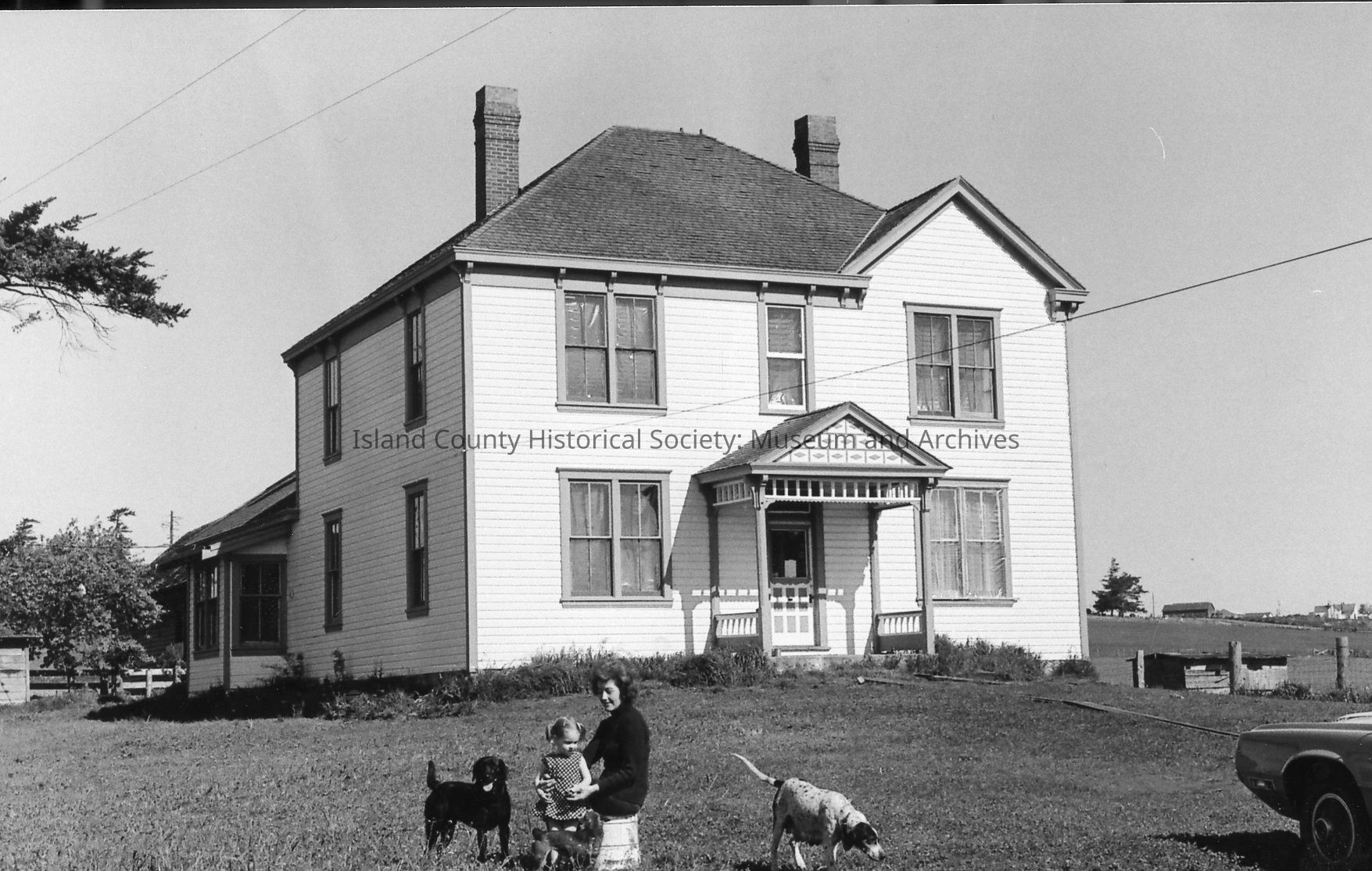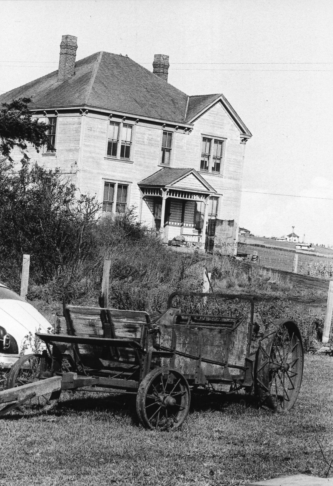 House at Smith Farm in 1972. It is two stories with tall windows and small porch at front door. An antique wagon sits in front.Photograph Details