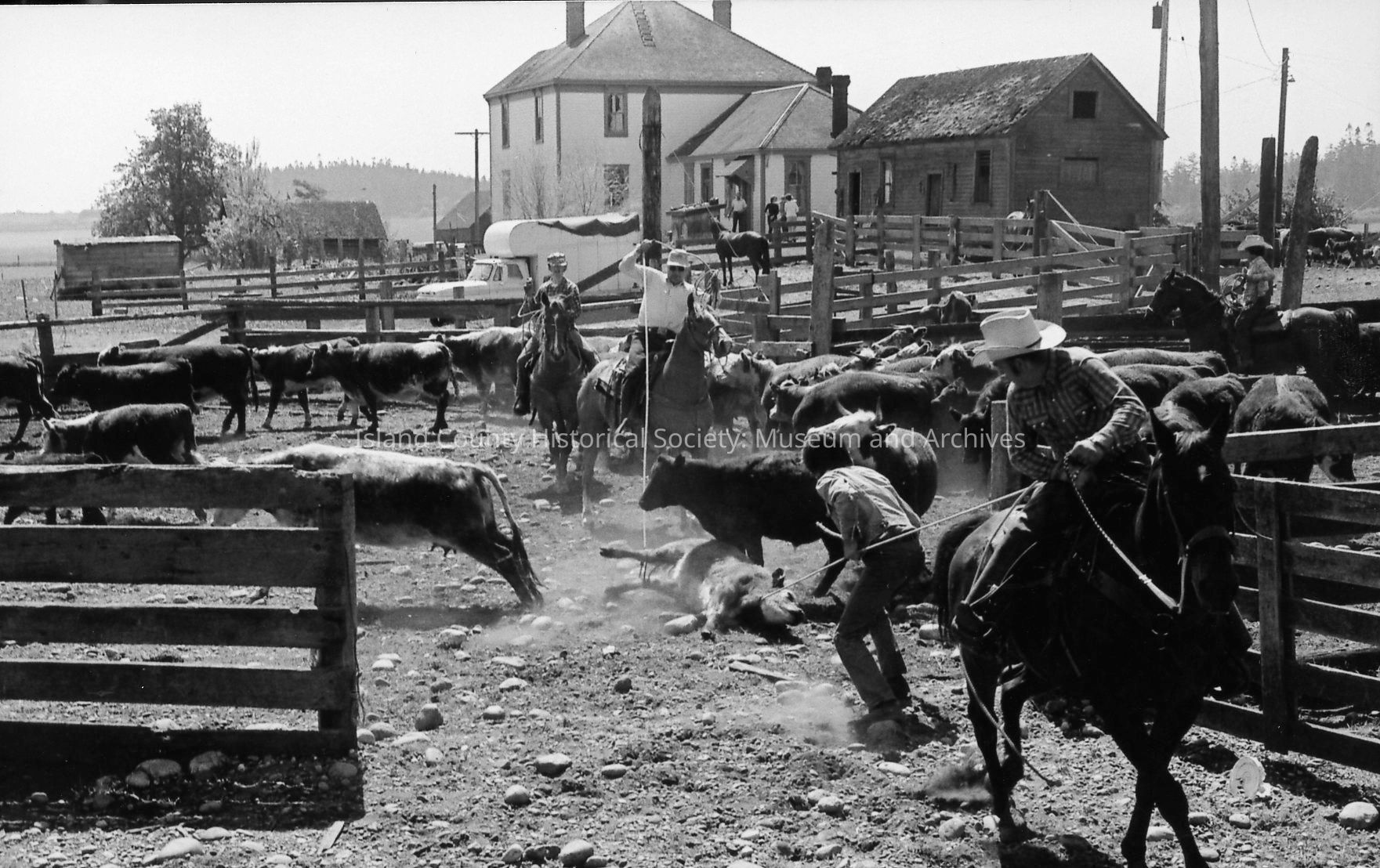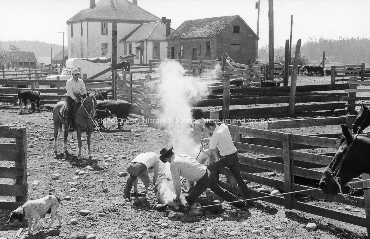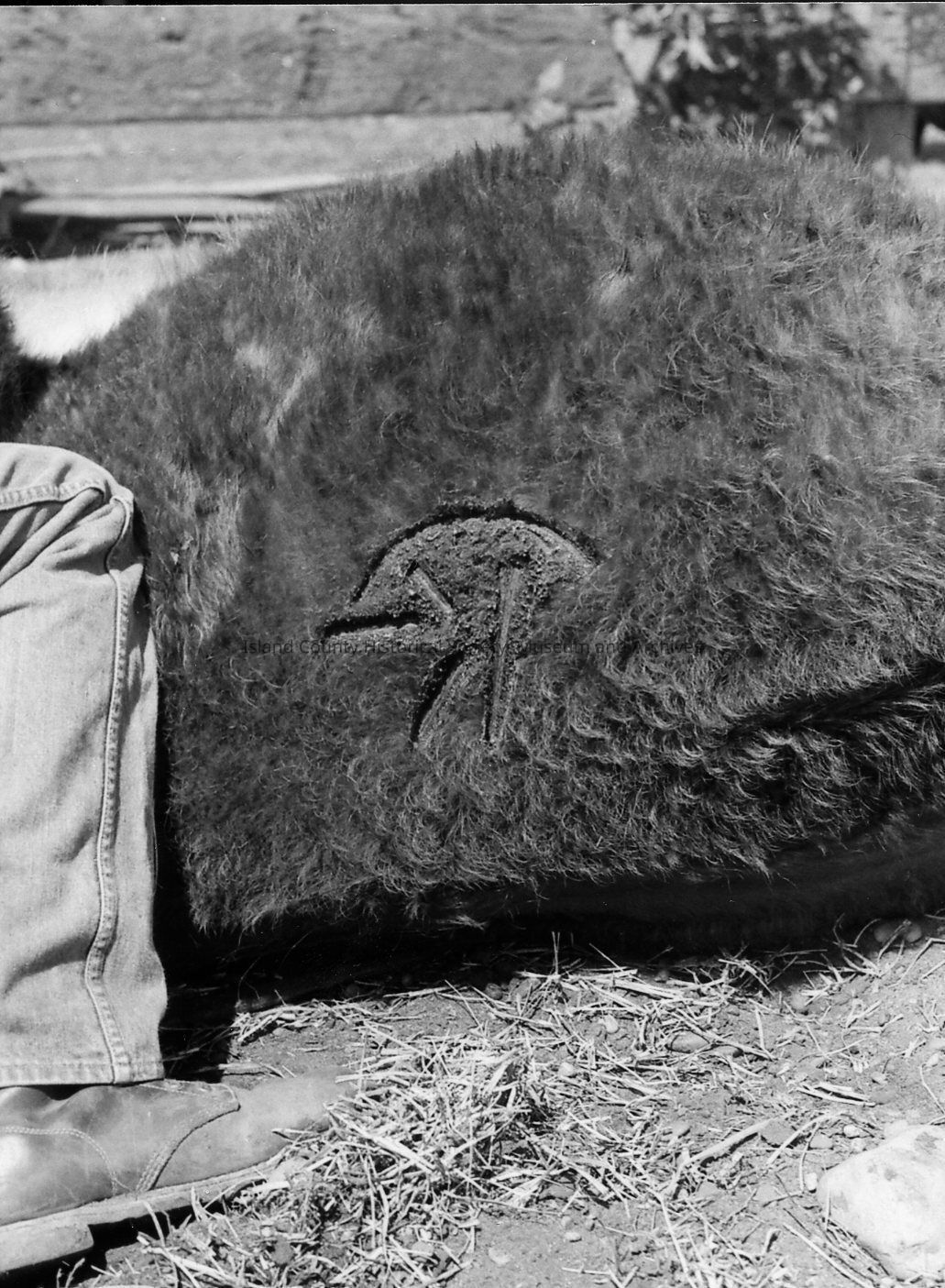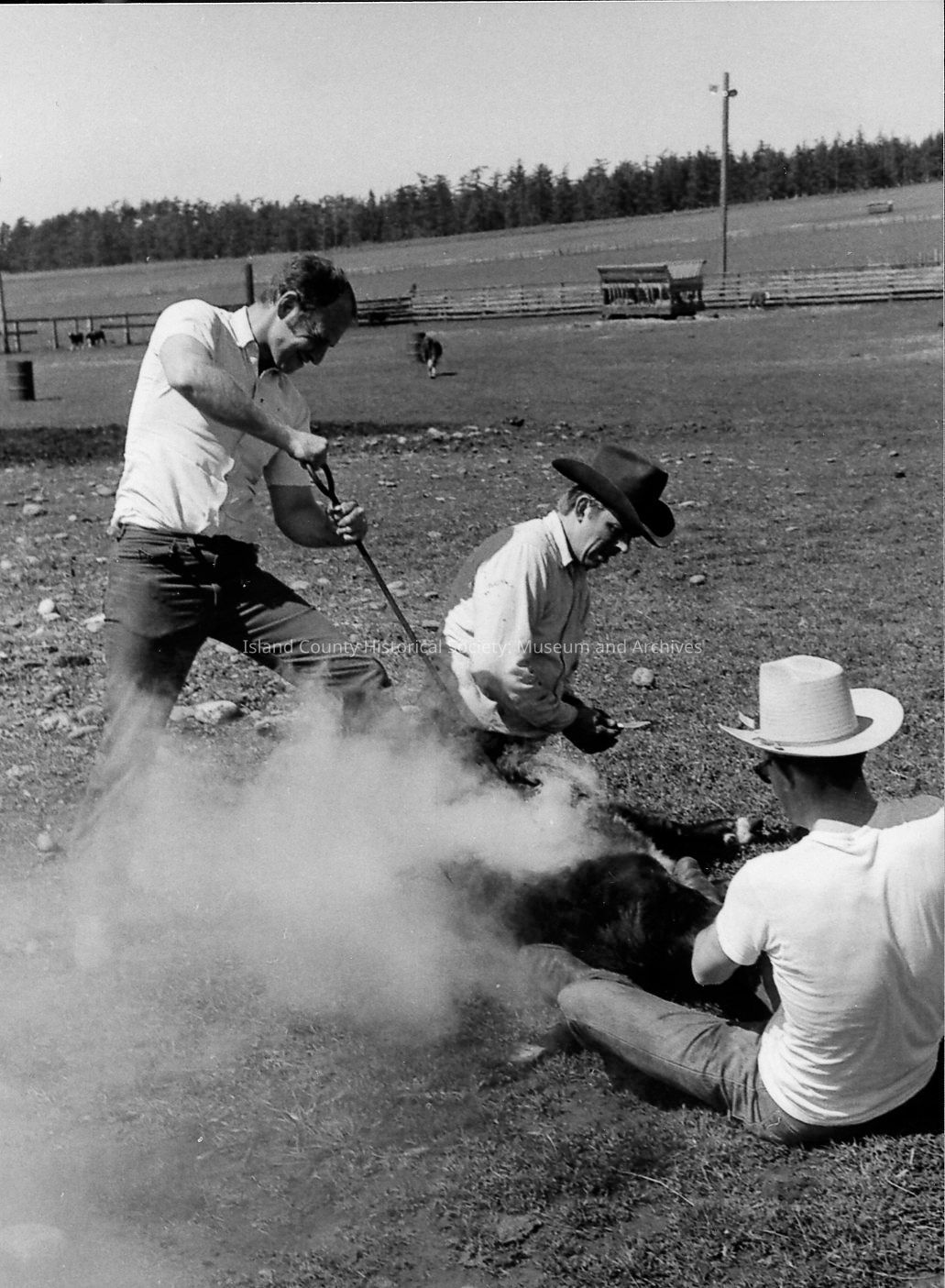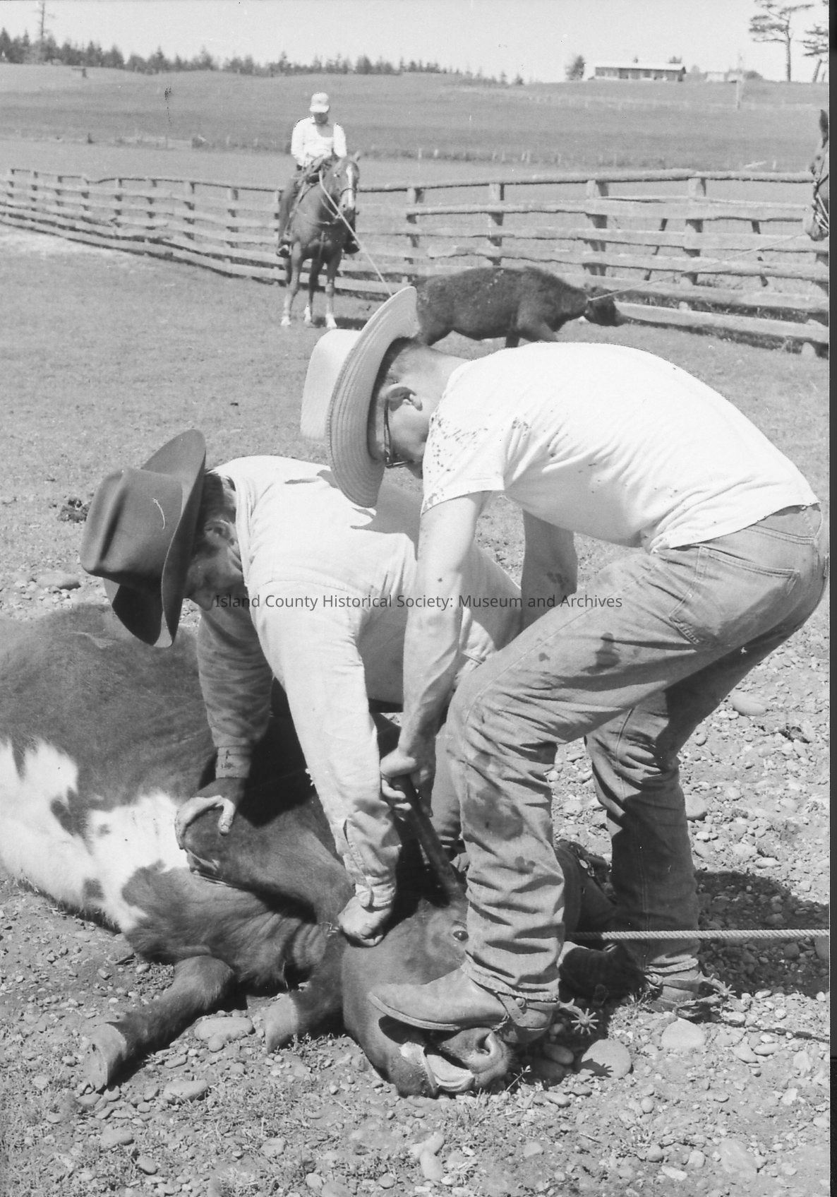 Closeup of brand on calf at 1972 roundup. Photos of branding and removal of horn.Photograph Details