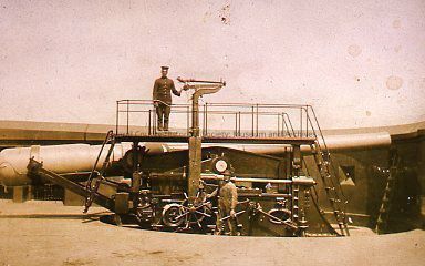 Photograph of soldiers with artillery, possibly at Fort Casey. Likely c. early 1900s.Relationships