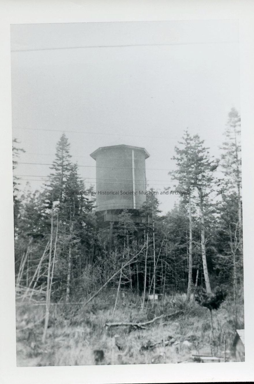 Photograph of a steel water tank at Fort Casey. This was used before the large underground cistern was completed. C. 1902-1913.Photograph Details