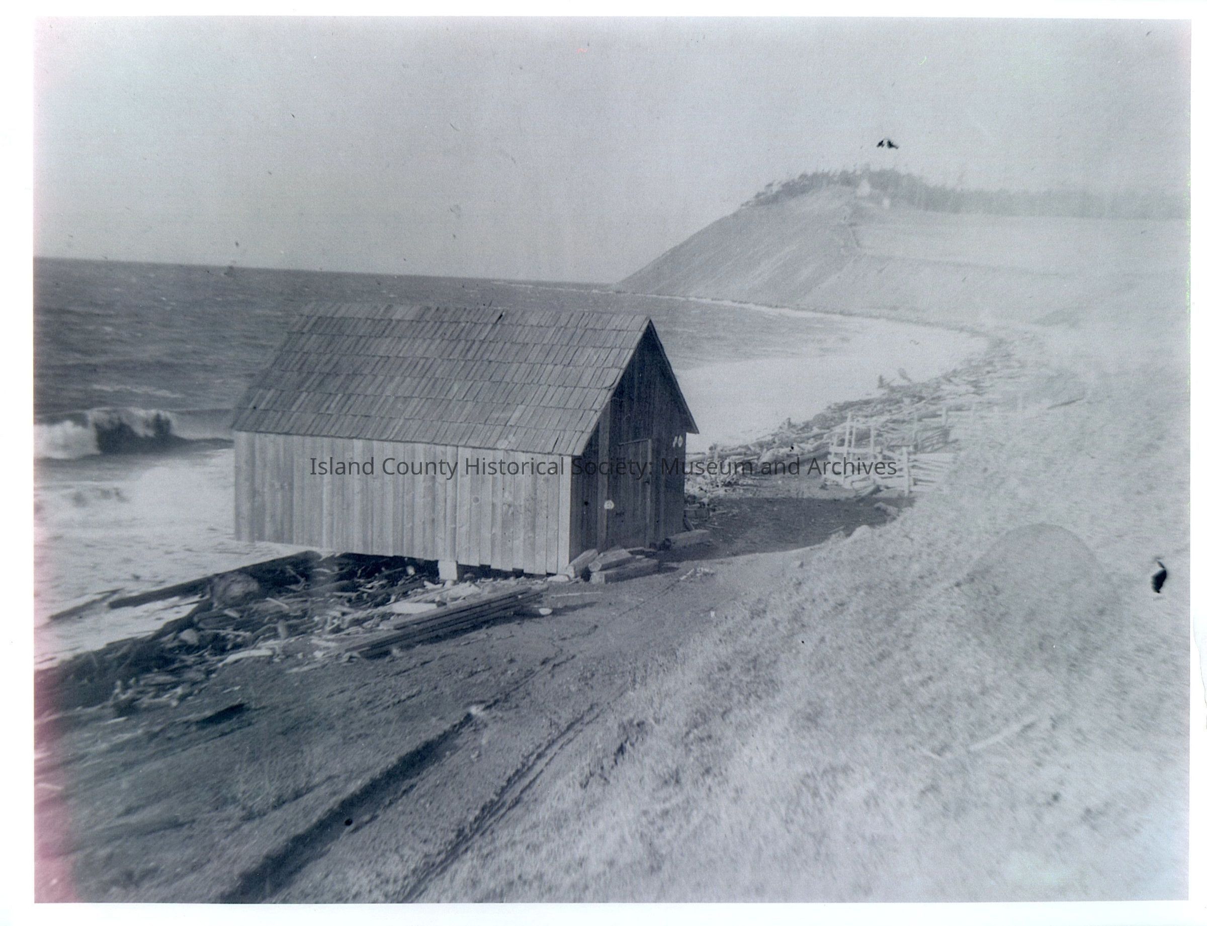 Photograph of a storage building at Ebey's Landing, c. 1880s-1890s.