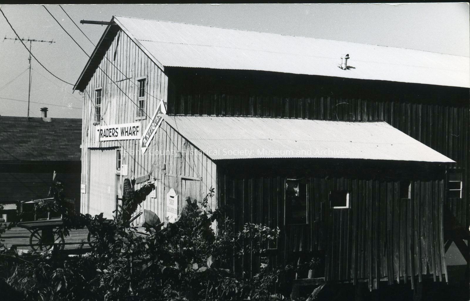 Postcard depicting a barn with a sign saying "Traders Wharf", likely the Kineth/Salmagundi farm. Possibly c. 1950s. Photo by Judith Allison Walters.Collection