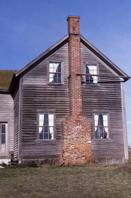 Color slide of Ferry House on Ebey's prairie. Photo of north side of house with rear addition on left. No front porch.
