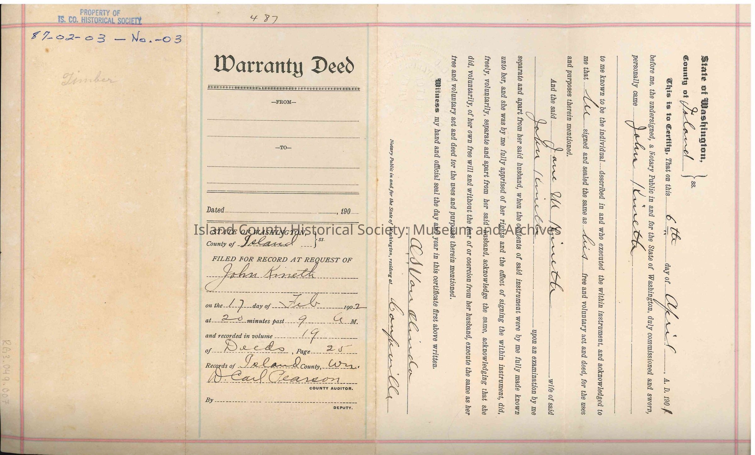 O.S. Van Olinda, Notary Public, State of Washington, Expiration of Commission Aug. 7. 1903.Material/Technique