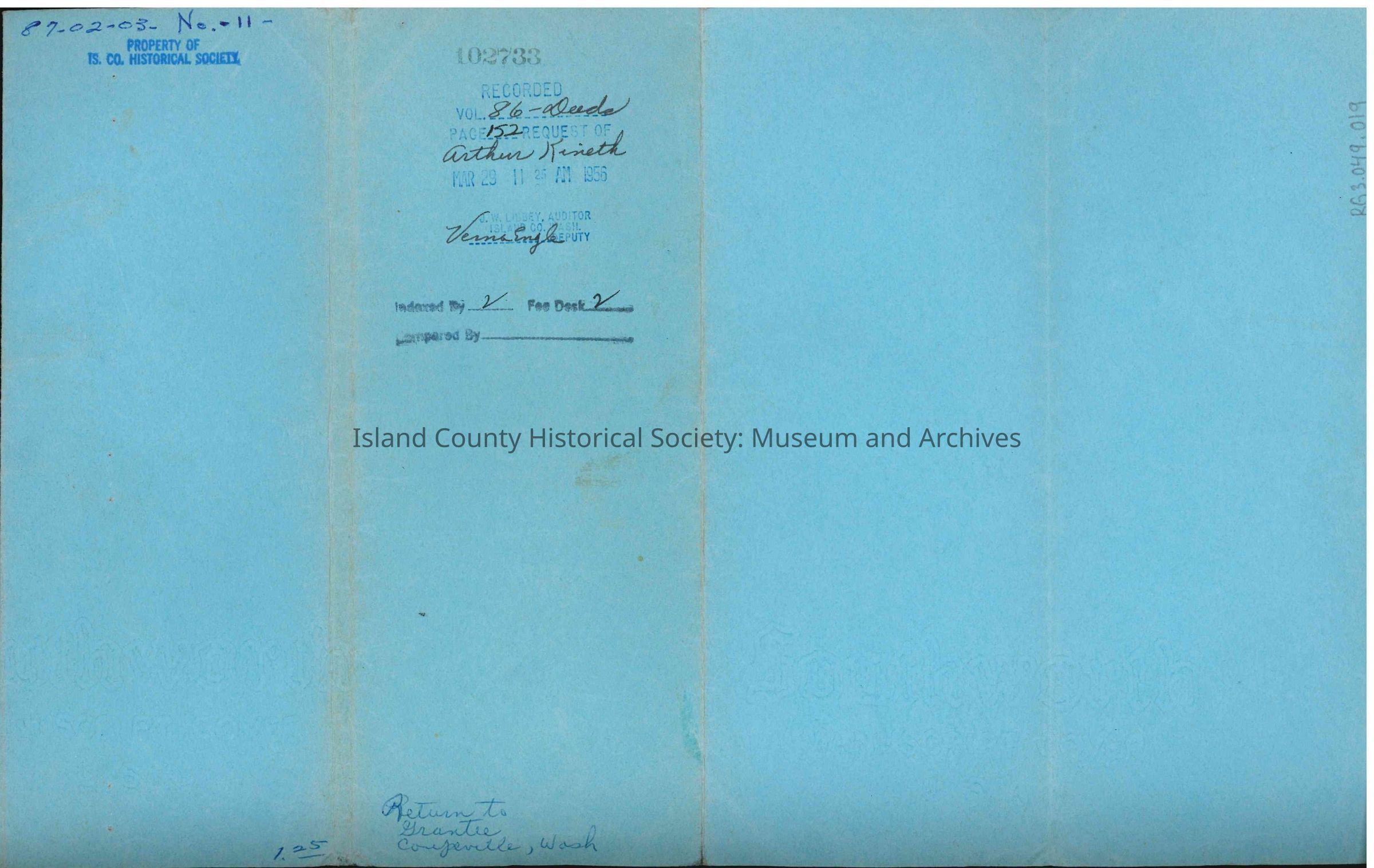 Warranty deed from Donald O. Patmore and Maurine Patmore to Arthur L. Kineth and Bernice A. Kineth for real estate in Island County. Dated 15 March 1950.