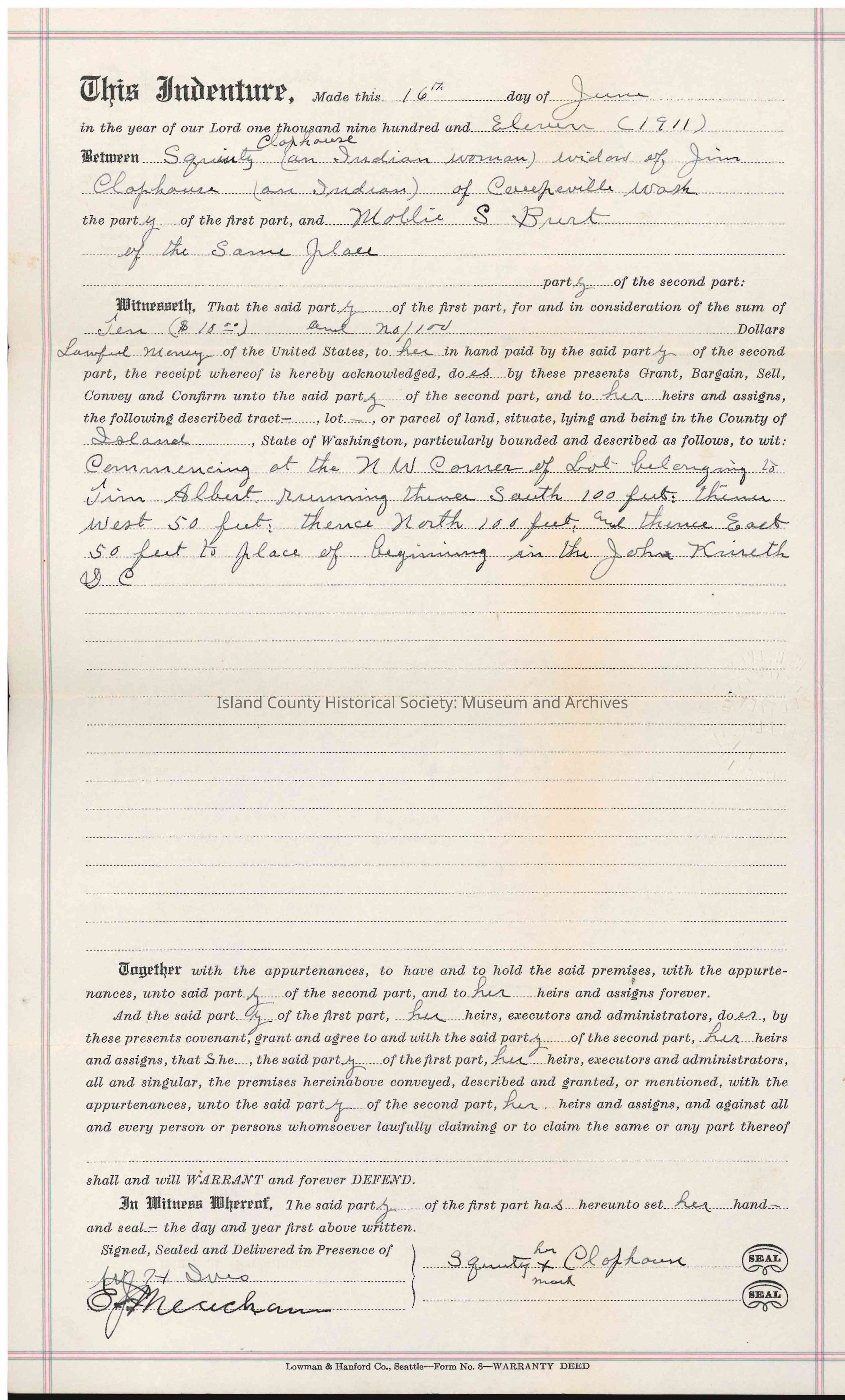 W.H. Ives, Notary Public, State of Washington, Commission Expires Jan. 31. 1913.Material/Technique