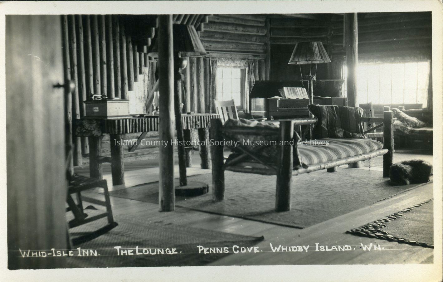 Postcard depicting the interior of the Whidbey Island Inn (Captain Whidbey Inn), c. 1920s.